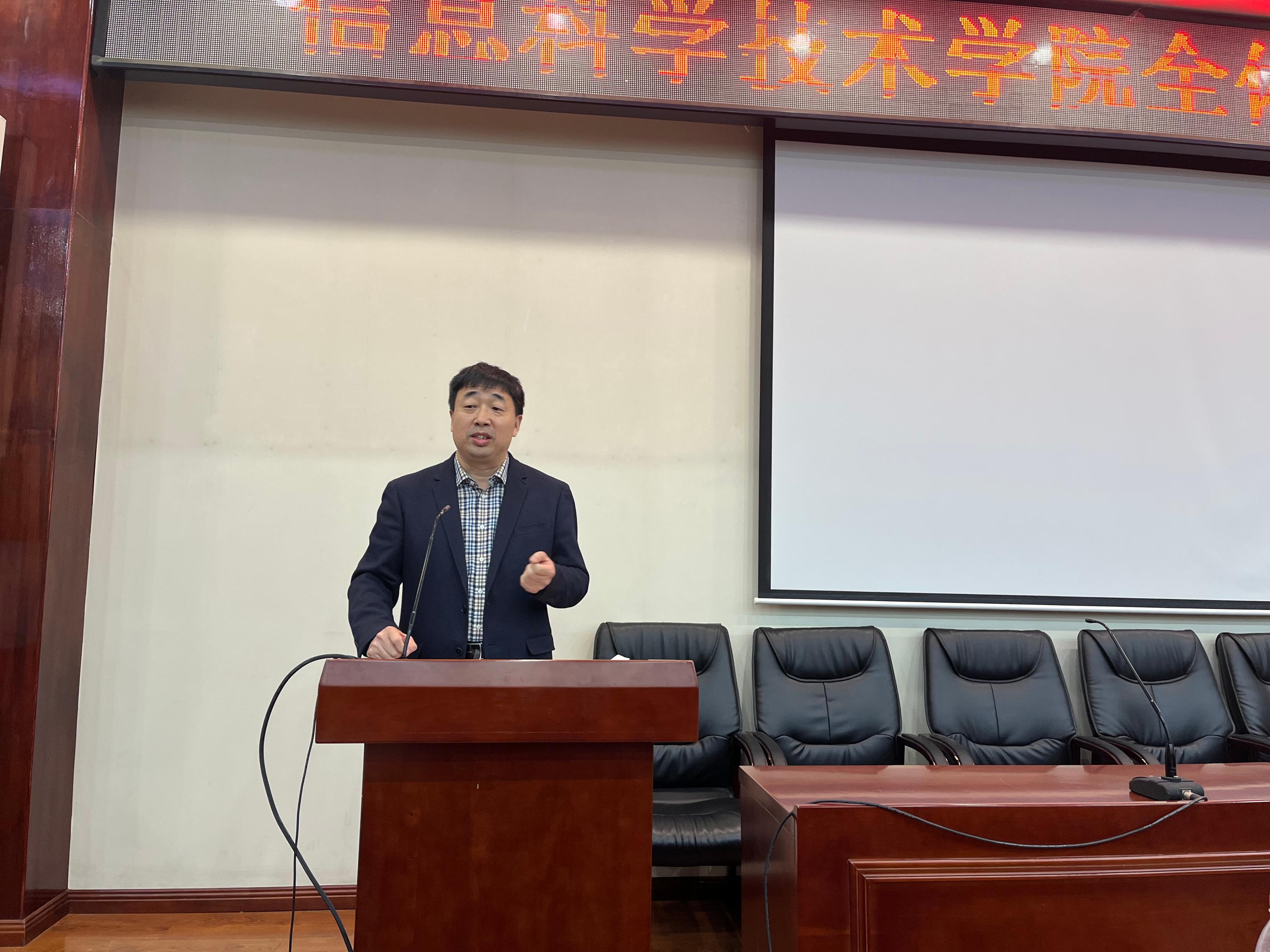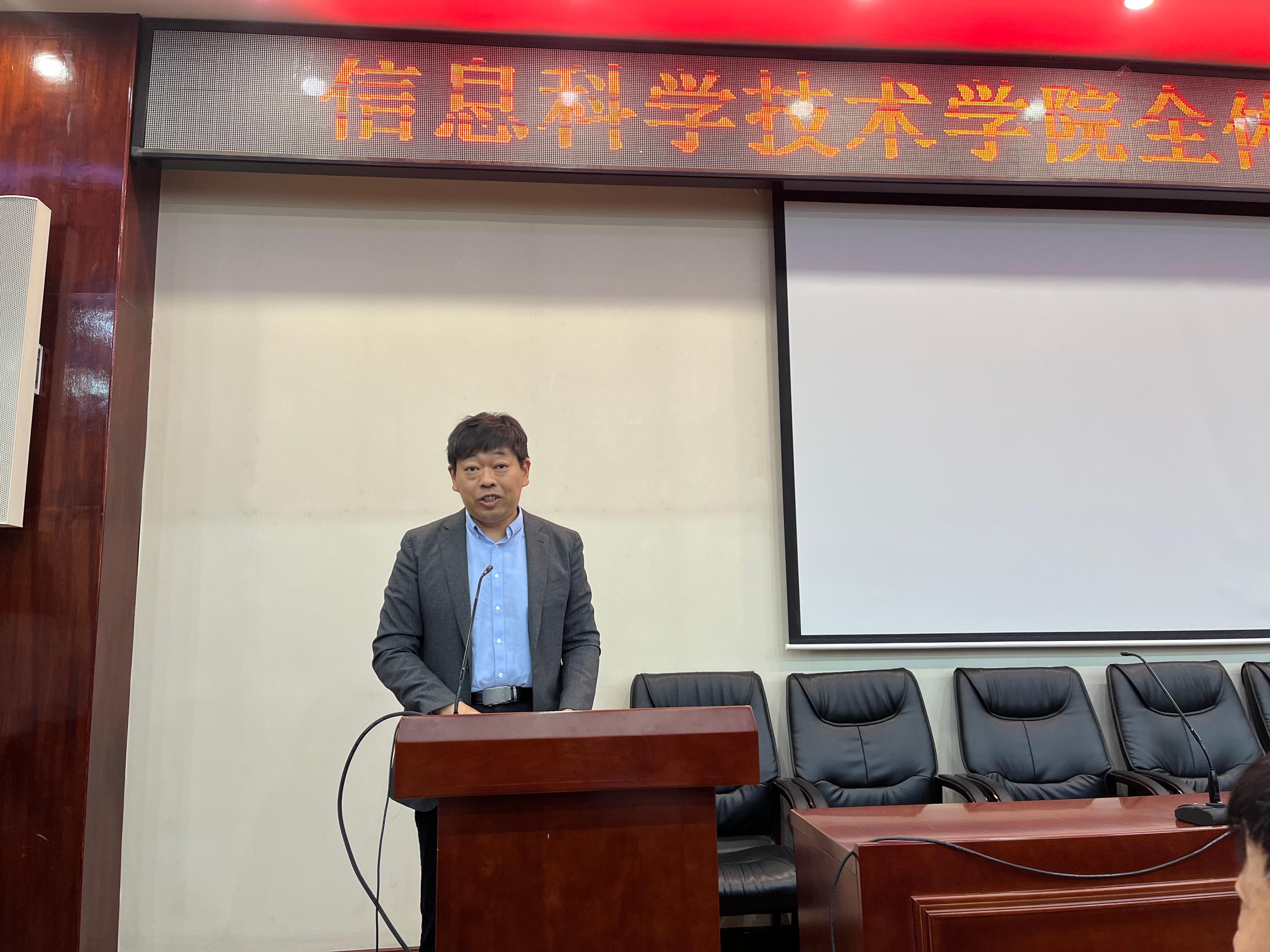 会议最后,张锦代表学校党委,对信息科学技术学院接下来的工作提出了明确要求和殷切期望。他表示,学院一是要切实履行党委政治责任,确保党的路线方针政策及学校党委决定贯彻执行有力,不断推动全面从严治党向基层延伸,切实把党的领导贯穿教书育人全过程。二是要进一步把握学校成立本科生学院的重要意义,努力提高信息学科人才培养质量。本科生学院要继续坚持立德树人根本任务,坚持“以本为本”,把本科教育放在人才培养的核心地位,放在教育教学的基础地位,放在新时代教育发展的前沿地位。三是要认真贯彻落实学校第十四次党代会精神,以更加优异的成绩迎接党的二十大胜利召开。学院要认真学习贯彻学校第十四次党代会精神,落实学校党代会的各项部署,同时,学院党委要全力做好迎接学习宣传贯彻党的二十大的各项准备工作,积极营造安全、和谐的教学科研工作氛围,用实际行动向党的二十大献礼。