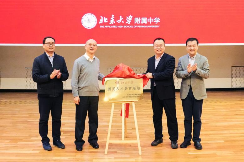 马玉国、熊校良、陆俊林、景志国共同为北京大学图灵人才共育基地揭牌。