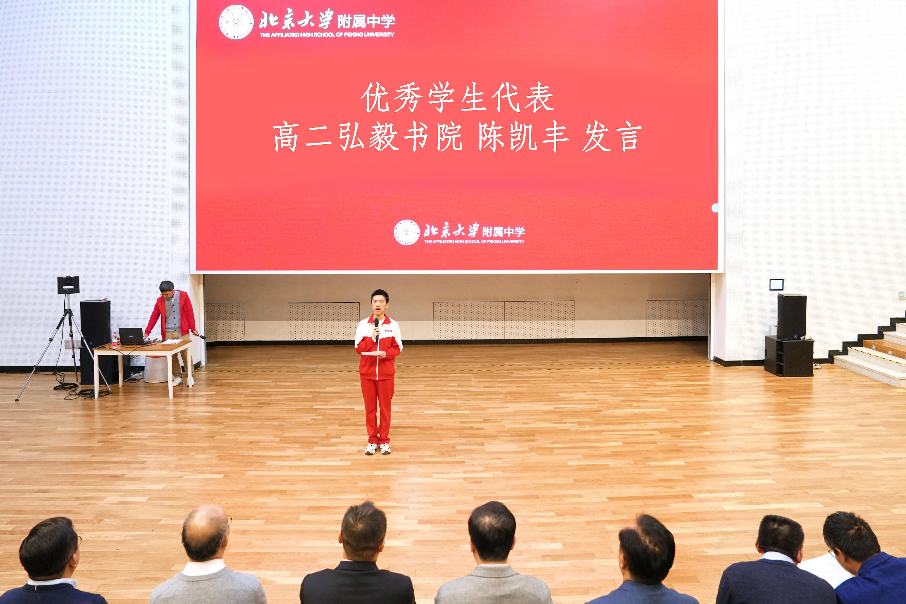 北大附中弘毅书院高二年级的陈凯丰同学分享了自己从初一开始在附中学习、生活、竞赛的经历。他表示,在北大附中的信息竞赛学习让自己收获了知识与成长,感谢元培贯通体系的培养和信息竞赛社团老师、学长们对自己的帮助,让他对未来的大学生活充满向往和期待。
