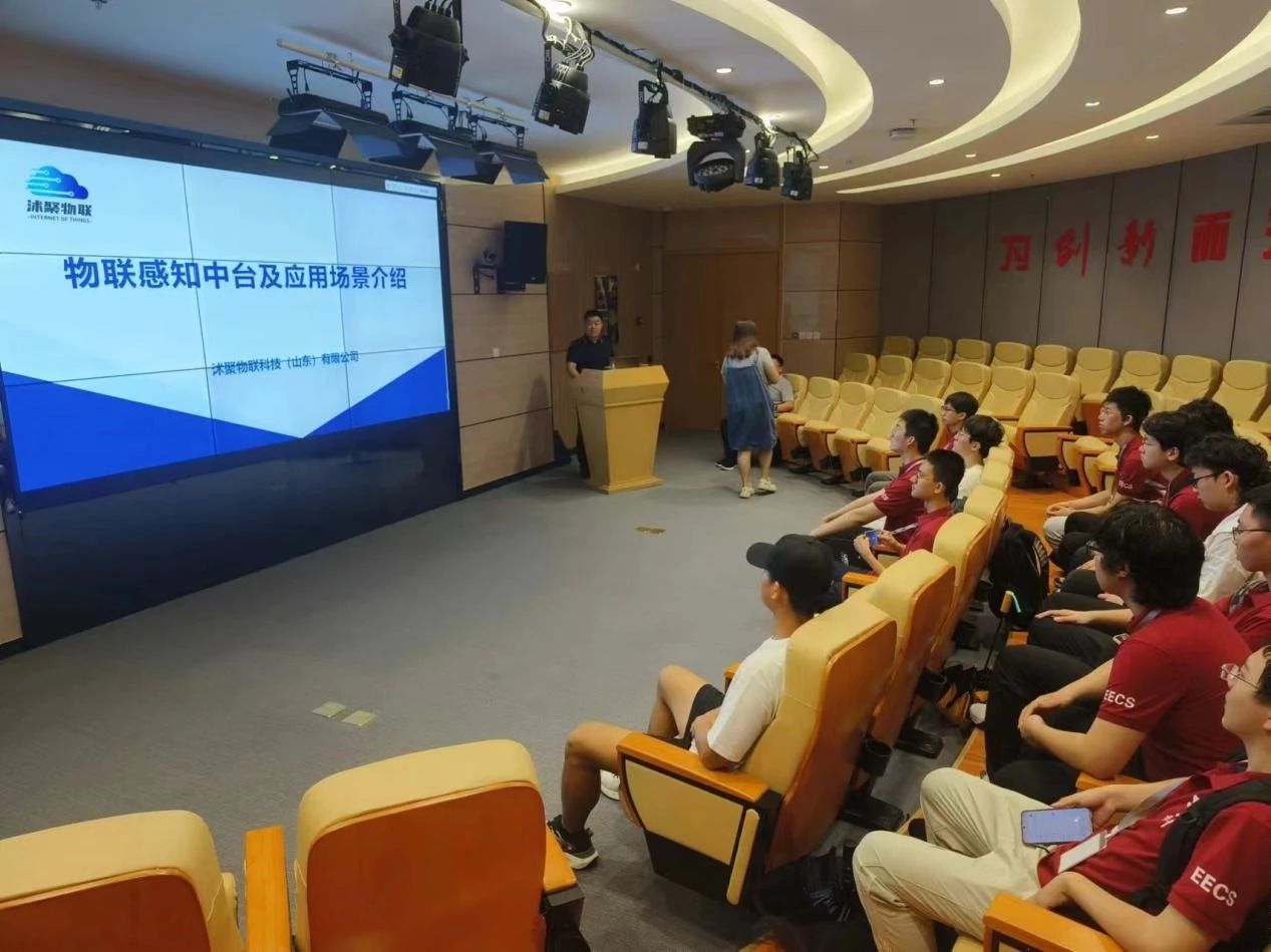 接着,实践团队来到沐聚物联科技(山东)有限公司进行了座谈交流。公司代表详细介绍了企业在物联网领域的创新成果和未来发展战略,特别是在智能硬件研发、物联网平台建设以及数据安全管理方面的经验与成就。同学们积极发问,就企业面临的技术挑战、人才培养等问题进行深入交流。
