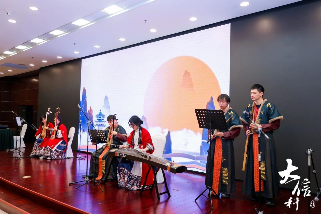 庞湫凡、孙嘉旋、肖贝儿、杨睿来四位同学表演舞蹈《Drama》,成员们在舞蹈中展现了极高的技巧和力量,每个舞步都显得精准而富有力量。黄溢乐、方于银等八位同学带来的民乐串烧《象王行+浮光》恢宏大气的曲调和细腻的情感表达直击人心。