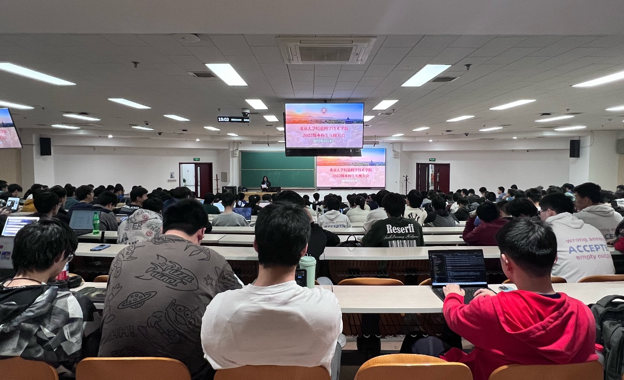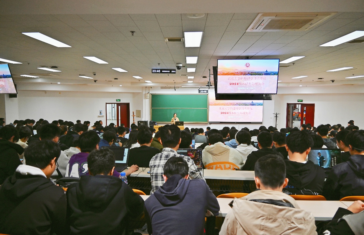 2025年4月18日晚,北京大学信息科学技术学院在理教207教室先后召开了2024-2025学年春季学期2022级和2024级本科生年级大会。信息科学技术学院院长侯士敏、副院长陆俊林、教学办公室主任董晓晖、学生工作办公室主任、2022级年级辅导员李子奇和学工干部、2024级年级辅导员付晓倩等老师出席,两个年级的全体本科生及各班班主任、带班辅导员等八百余人参加大会。大会针对不同年级学生发展需求,分场次开展学业指导、思政教育和生涯发展等专题交流。
