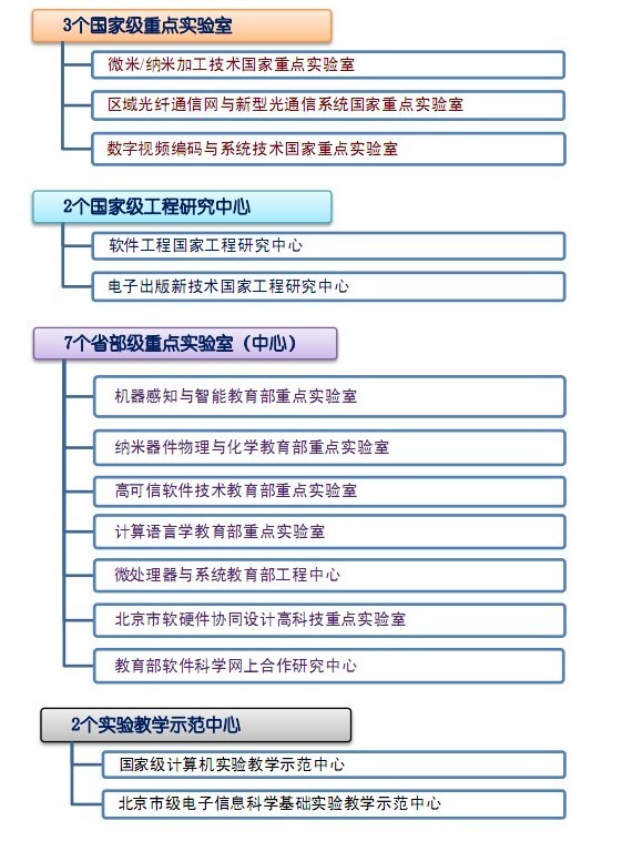 信息科学技术学院是北京大学最大的学院,师资力量雄厚,现有教职员工340余人,其中中国科学院院士3人,中国工程院院士1人,教授91人,副教授116人。拥有3国家级重点实验室,2个国家级工程研究中心,7个省部级重点实验室(中心)和2个实验教学示范中心。