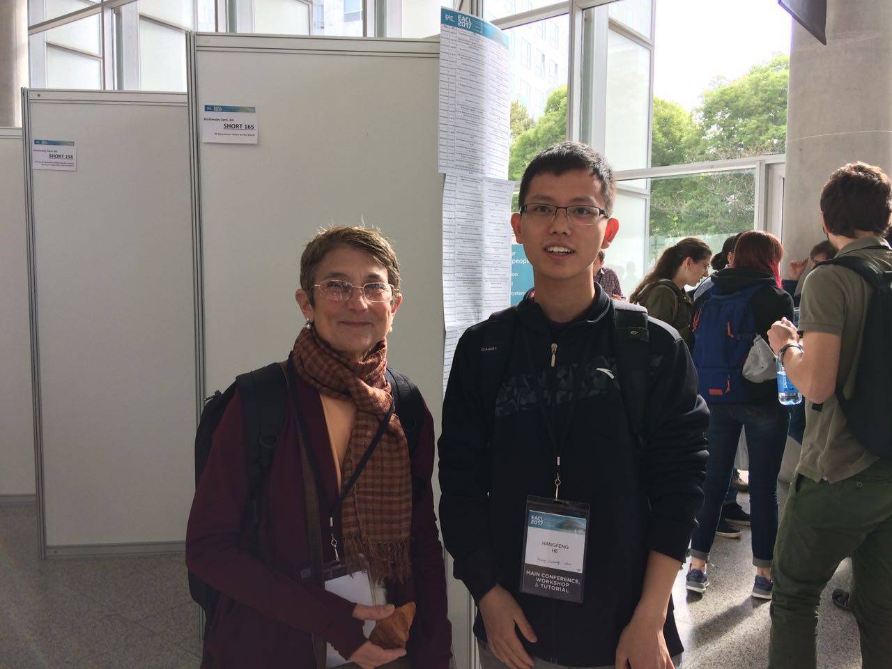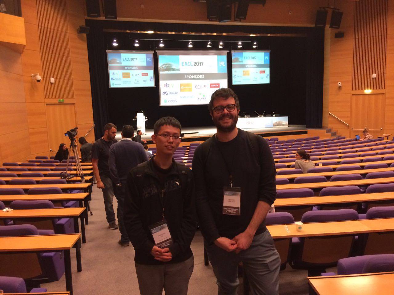 今年四月初,我在学院的资助下参加在西班牙瓦伦西亚举行的The European Chapter of the Association for Computational Linguistics (EACL) 2017会议,并在会议中为我的论文《F-Score Driven Max Margin Neural Network for Named Entity Recognition in Chinese Social Media》和《Neural Networks for Negation Cue Detection in Chinese》做报告并同时参与作为共同作者的论文报告《Detecting negation scope is easy, except when it isn't》。