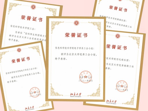 2021年4月29日,北京大学工会发布表彰2019、2020年先进集体和优秀个人的决定,信息科学技术学院工会因工作成绩出色获得了多项荣誉。除学院工会被评为“先进工会委员会”外,电子学系工会小组和行政工会小组被评为“优秀工会小组”,羽毛球社团和舞蹈社团被评为“优秀教职工社团”,“信科师生的国球文化”被评为“优秀活动”,同时,王晶云、王媛、刘洪禹和范京涛4位同志被评为“优秀工会干部”,薛萍、赖舜男、张磊和张雅聪4位同志被评为“工会活动积极分子”。