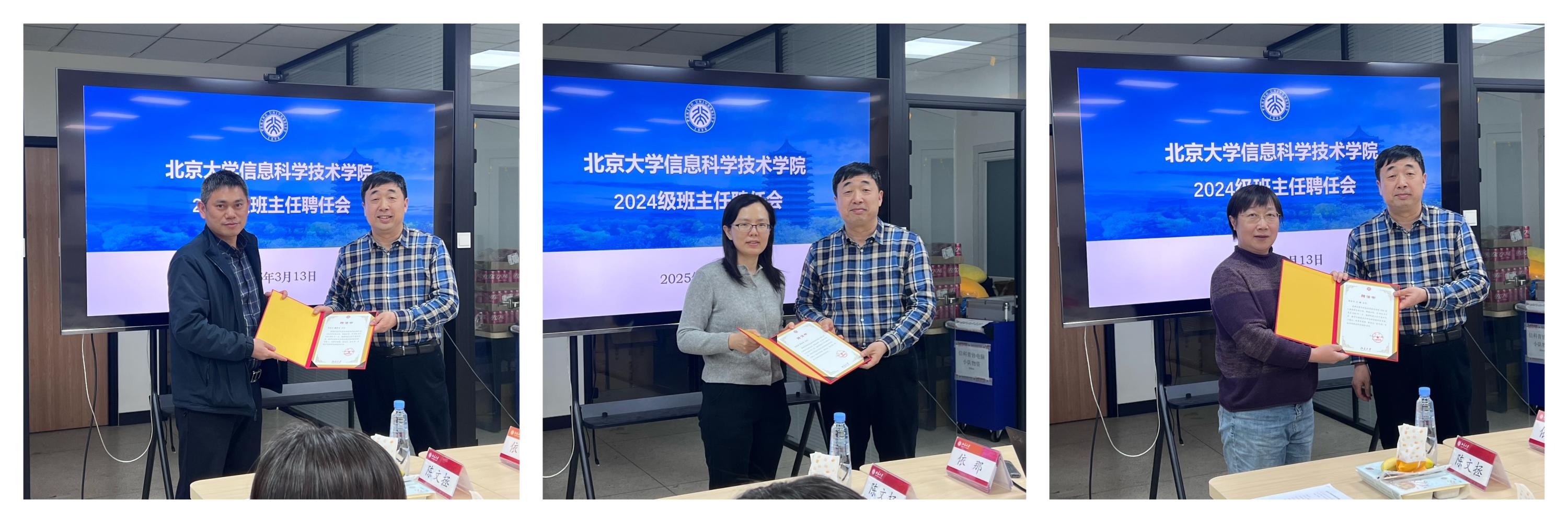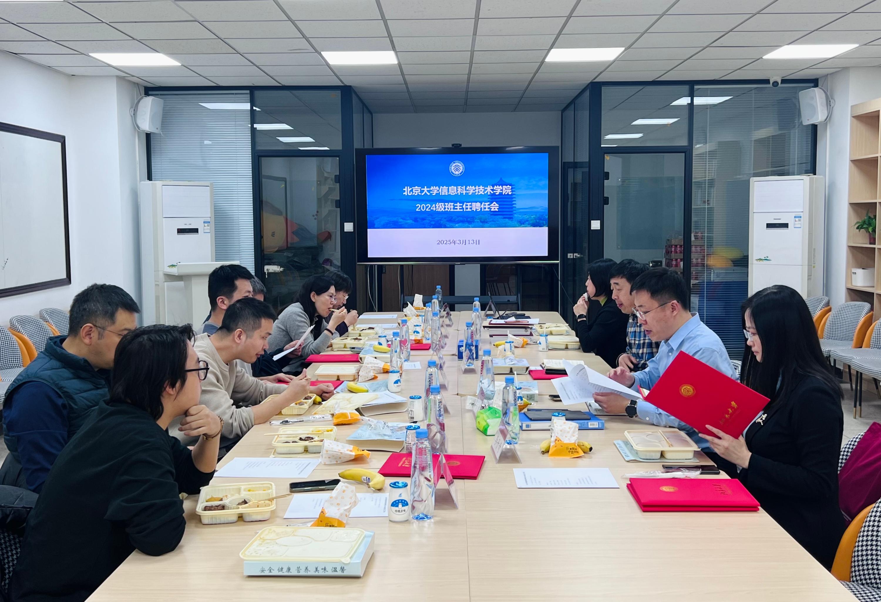 为强化班级管理队伍建设,部署新学期学生重点工作,推动教育教学高质量发展,3月13日中午,北京大学信息科学技术学院召开2024级班主任聘任会。学院党委书记严敏杰、教学办公室主任董晓晖、学生工作办公室主任李子奇、2024级年级辅导员付晓倩及2024级班主任参会,会议由学院党委副书记贾方健主持。