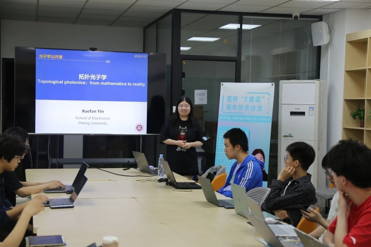 2025年5月16日晚,信科“E席谈”青年学术沙龙第三十二期活动在理科一号楼1127学生活动室顺利举办。北京大学电子学院信息与通信研究所助理教授尹雪帆老师受邀进行了以“拓扑光子学:FROM MATHEMATICS TO REALITY”为题的分享。本次沙龙由信息科学技术学院青年志愿者协会翟睿辰同学主持,院团委书记吕媛老师参加了本次活动。