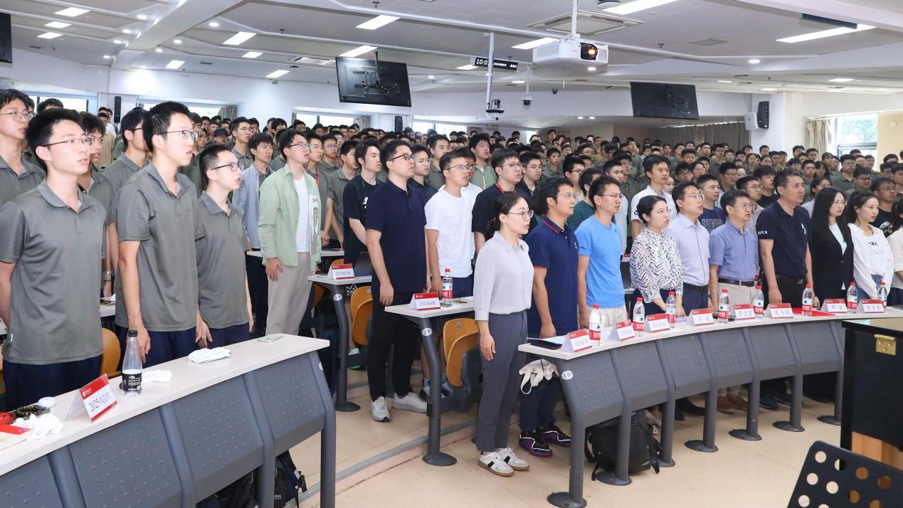 信息科学技术学院院长侯士敏、学院副院长邓斌、党委副书记贾方健、学工办主任李子奇、团委书记吕媛,学生工作办公室的其他老师、各班级领队教师和带班辅导员以及2025级全体参训学生参加大会。结训仪式由2025级年级辅导员梁怿主持。