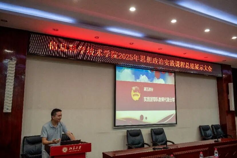 团委书记吕媛老师首先对本年度思政实践课程的整体开展情况作了系统总结。她指出,本次实践坚持以政治引领为核心,引导青年学子深入学习领会习近平总书记关于青年工作的重要论述,不断增强“四个意识”、坚定“四个自信”、做到“两个维护”。同时,课程设计紧密结合信息学科特色,推动思政教育与专业教育有机融合,组织多支团队开展AI科普等特色活动。学院高度重视实践安全工作,成立专项工作领导小组,院领导班子全体成员亲自带队深入一线,并新建立了六处思政实践基地,为课程的顺利开展提供了坚实保障。学院通过“大信科”微信公众号专栏、成果展览等形式,对实践动态与收获进行了广泛宣传。
