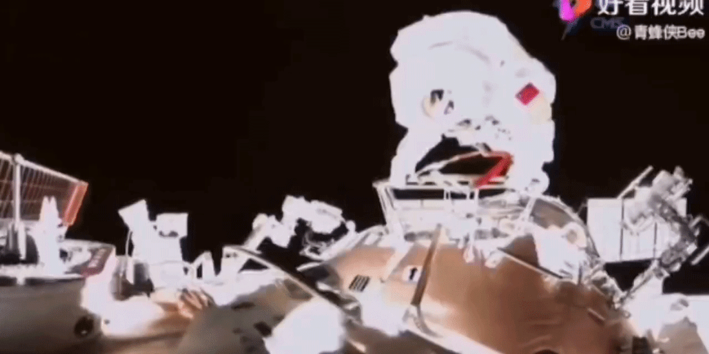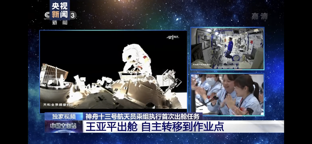 11月7日,身穿“飞天”舱外航天服的北大人王亚平,从天和核心舱节点舱成功出舱,迈出中国女性舱外太空行走第一步。