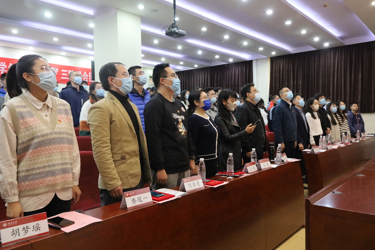 2022年10月23日上午9:00“信历艺”三院联合团校开学典礼在理科二号楼2129室隆重举行。北京大学团委副书记鞠晓、马克思主义学院副教授张会峰,艺术学院党委副书记王蓓,历史学系党委副书记吴雅文,信息科学技术学院党委副书记贾方健,信息科学技术学院团委书记吕媛、团委副书记乔冠一、丁倩,历史学系团委书记刘东奇、团委副书记胡梦瑶,艺术学院团委书记解明、团委学工办辅导员颜丽等出席,三院系团学骨干、团校新老学员参加此次开学典礼,艺术学院团委学生副书记胡虞婧主持开学典礼。