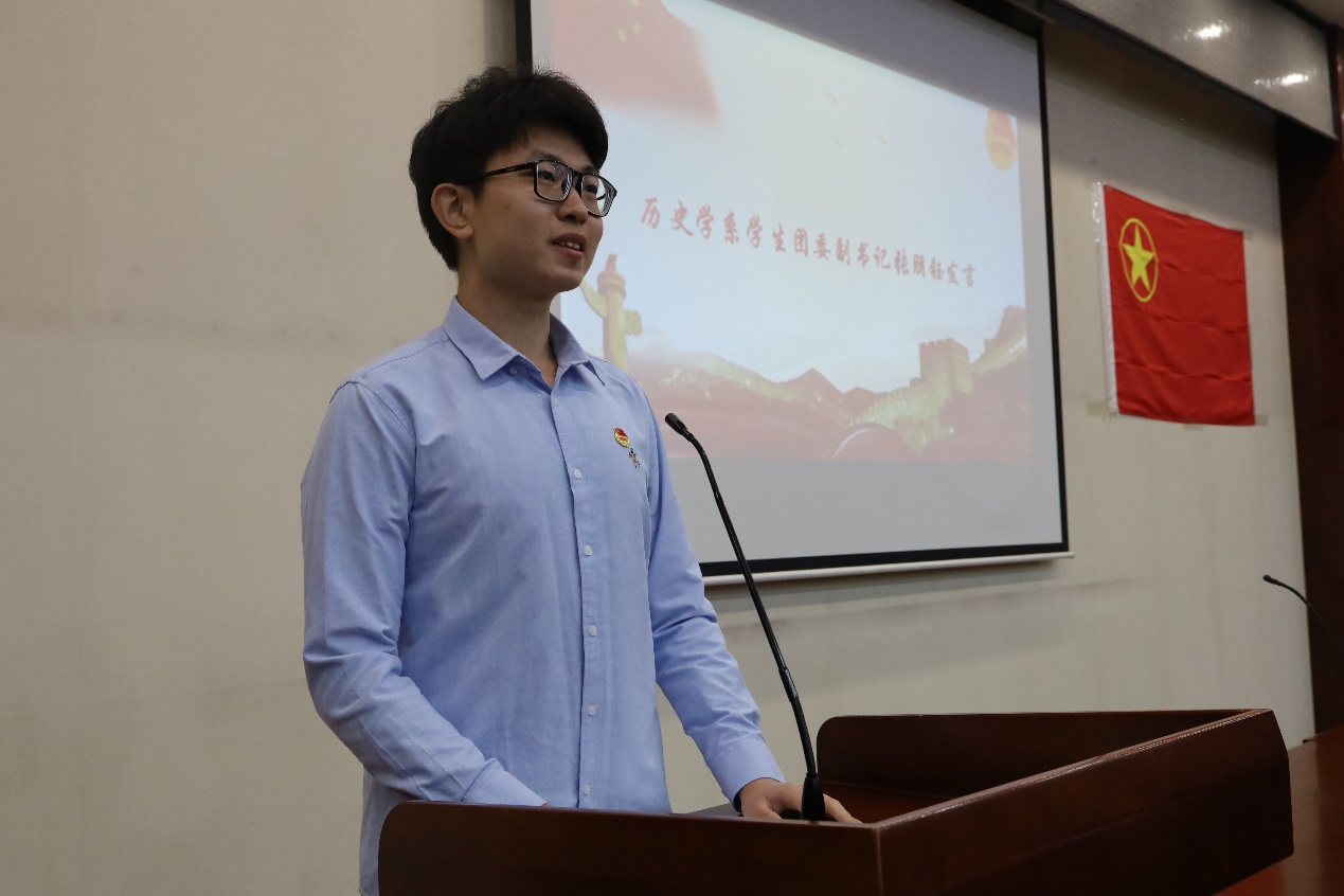 随后,历史学系团委学生副书记张朋钰发言。他向大家介绍了团校的主要职能和具体内容。此外,他还简要说明了本次团校采取的学分结业机制。
