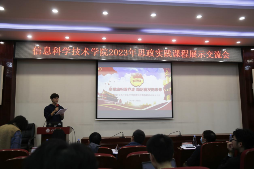 吕媛从课程特色、基地建设、策划筹备和成果宣传方面介绍了今年信科学院思政实践课程的开展情况。首先,今年课程建设承袭了去年的特点,进一步强化了课程的思政引领和教育导向作用,也结合新时代教育育人理念,进一步强化专业学科和实践的联系,探索在大体量学生基数背景下,开展具有新工科特色的、信息学科特色的思政实践育人新模式。其次,今年学院继续加大对于思政实践课程教育基地的合作建设,新建立了云南弥渡、浙江台州路桥区、山东济宁三家基地。学院高度重视今年课程的策划筹备,成立领导小组,精心设计主题路线和课程内容,由书记和院长担任双组长保障各项工作顺利推进。学院也成立了相应的工作专班负责课程具体事项的落实和开展,制定了实践教育方案、安全应急情况预案等,保障实践团平安顺利出行。学院在官方公众号“大信科”上推出“信有所行”专栏,共发布原创文章23篇,在理科一号楼走廊橱窗设置思政实践课程成果展,展示信科青年昂扬的精神面貌和丰富的实践收获,行有所昭,行有所得。