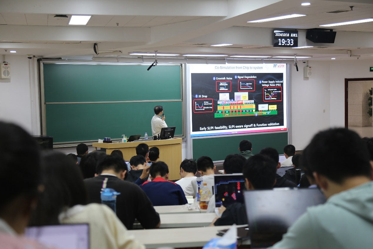 2024年10月18日晚,信息科学技术学院第二十七期“知存讲座”暨信息科学前沿与产业创新课程在理科教学楼107教室顺利举办。通富微电股份有限公司副总裁、工程中心总经理谢鸿博士受邀进行了以“封装技术的简介挑战和发展趋势”为主题的报告。本次讲座由学院副院长王润声老师主持。