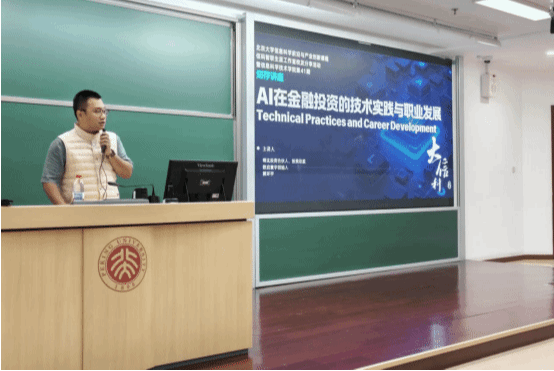 2025年10月24日晚,信息科学技术学院第四十一期“知存讲座”暨信息科学前沿与产业创新课程在理科教学楼107教室顺利举办。本次讲座以"AI在金融投资的技术实践与职业发展"为主题,特邀上海明汯投资管理有限公司合伙人、投资总监,上海数启寰宇人工智能科技有限公司创始人解环宇学长担任主讲嘉宾。作为北京大学信息科学技术学院“信码智联生涯工作室”首批校友导师,解环宇学长在量化投资领域深耕多年,拥有广阔的国际视野和丰富的实践经验,为在场同学呈现了一场内容翔实、见解独到的学术与职业分享盛宴。讲座由信息科学技术学院副院长王润声教授主持。信息科学技术学院院长侯士敏和信息科学技术学院党委副书记贾方健受邀出席了本次活动。