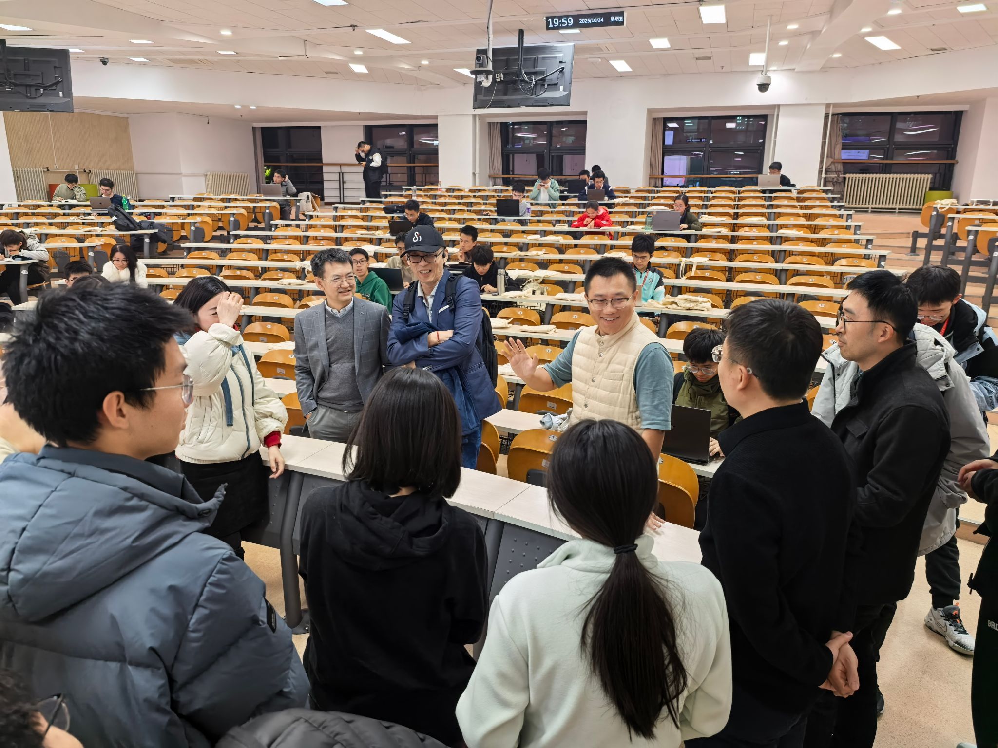 整场讲座中,解环宇学长以其深厚的专业素养和丰富的实践经验,为同学们呈现了当代量化投资的全景图,也启发同学们思考AI大模型对于量化投资的潜在功效。讲座结束后,仍有不少同学围在讲台前与解环宇学长继续深入交流。相当热烈的讨论氛围体现了同学们对“AI+金融”这一交叉领域的浓厚兴趣,也展现了知存讲座在激发学术兴趣、引导职业发展方面的积极作用。