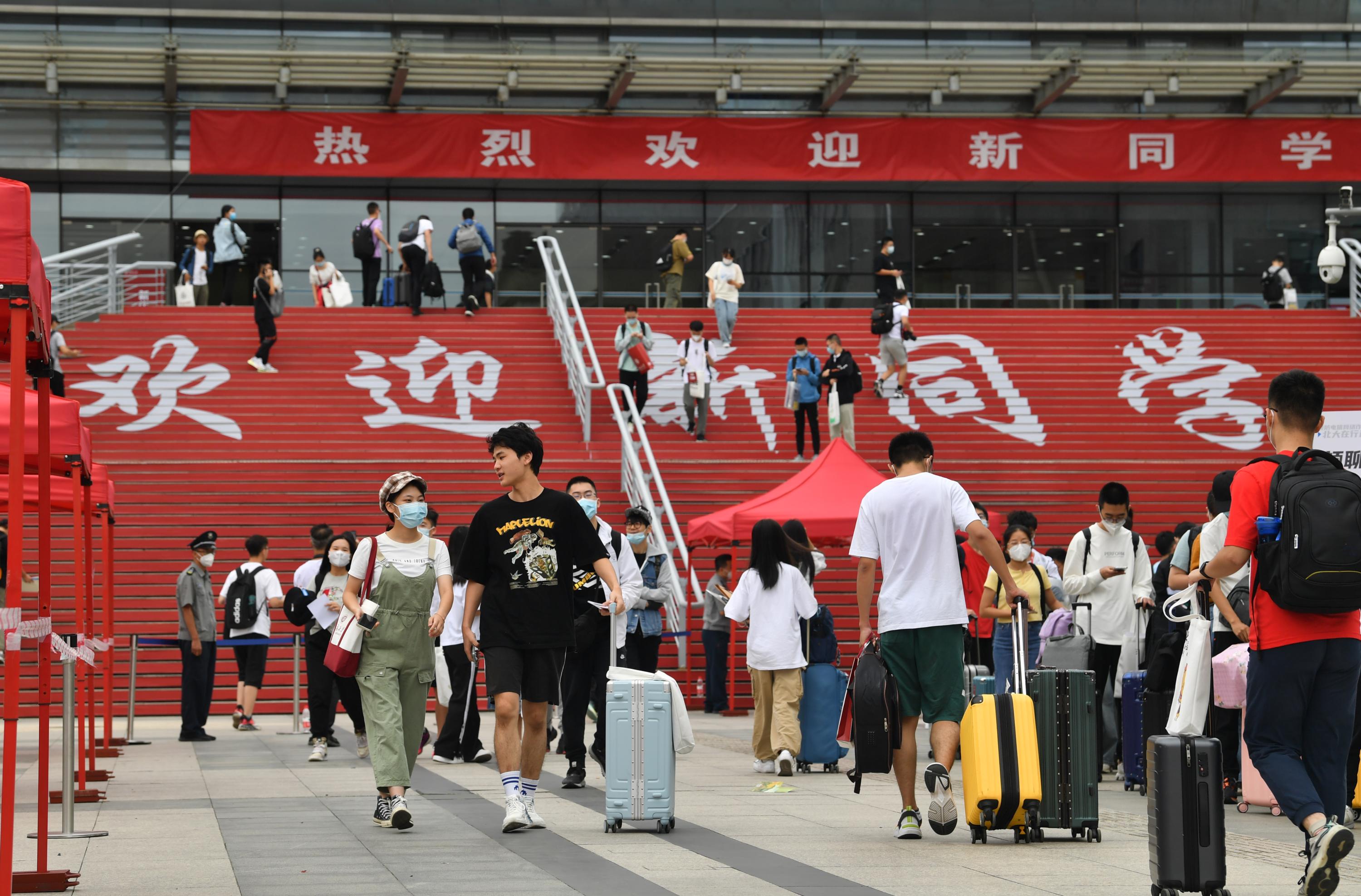 为方便学生入校,北京大学8月28日至29日两天,从6:30至19:00在北京站、北京西站、北京南站、首都机场、大兴机场设接待站,现场有身着红色戴北大标识T恤的工作人员和蓝色马甲的学生志愿者进行引导。新生持录取通知书、48小时内核酸检测阴性证明和“北京健康宝”绿码即可乘坐迎新校车进入北大校园。