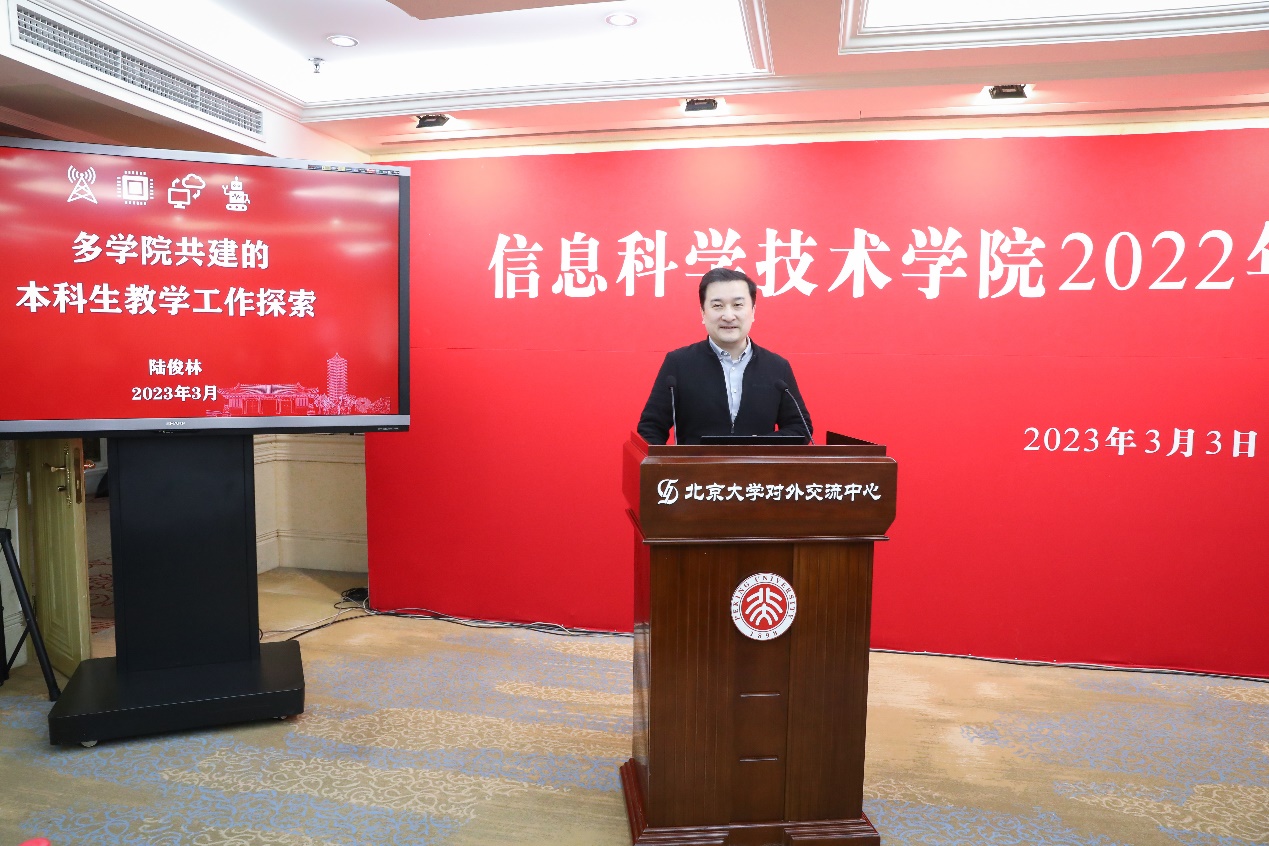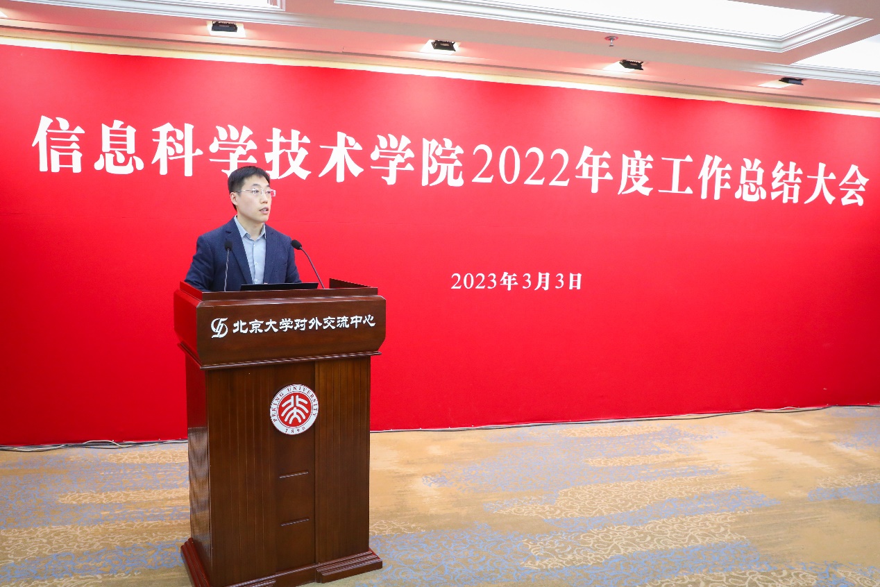 总结过去,继往开来。此次会议总结回顾了学院过去一年工作的丰硕成果。新的一年,学院全体教职工将以党的二十大精神与习近平新时代中国特色社会主义思想为指引,立足学科优势与特色,面向信息科学前沿与国家重大战略需求,培养信息学科高端人才和创新创业领军人才;面向学校其他专业本科生,承担信息科学素质教育,推进北大新工科本科人才培养再上新台阶,开启学院各项工作高质量发展新征程。