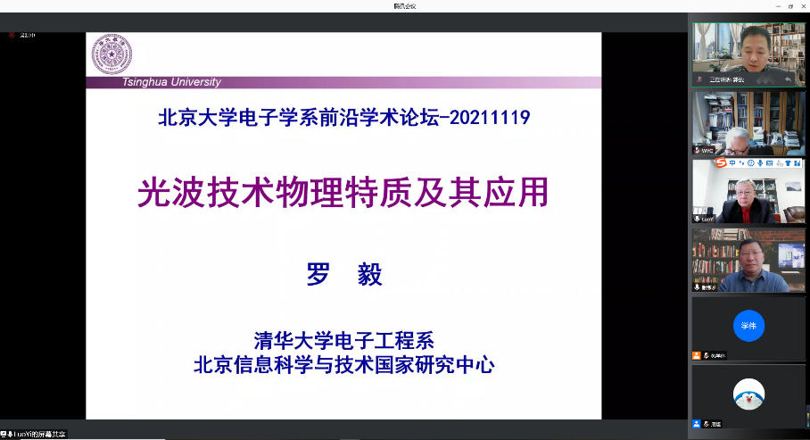 2021年11月19日下午,由北京大学电子学系主办的电子学系前沿学术论坛第十九期通过网络顺利举行。本期论坛邀请到中国工程院院士,北京信息科学与技术国家研究中心副主任,清华大学电子工程系罗毅教授做主题为“光波技术物理特性及其应用”的学术报告。讲座由北京大学电子学系量子电子学研究所所长郭弘教授主持,共约120名师生线上参加了本次学术报告。