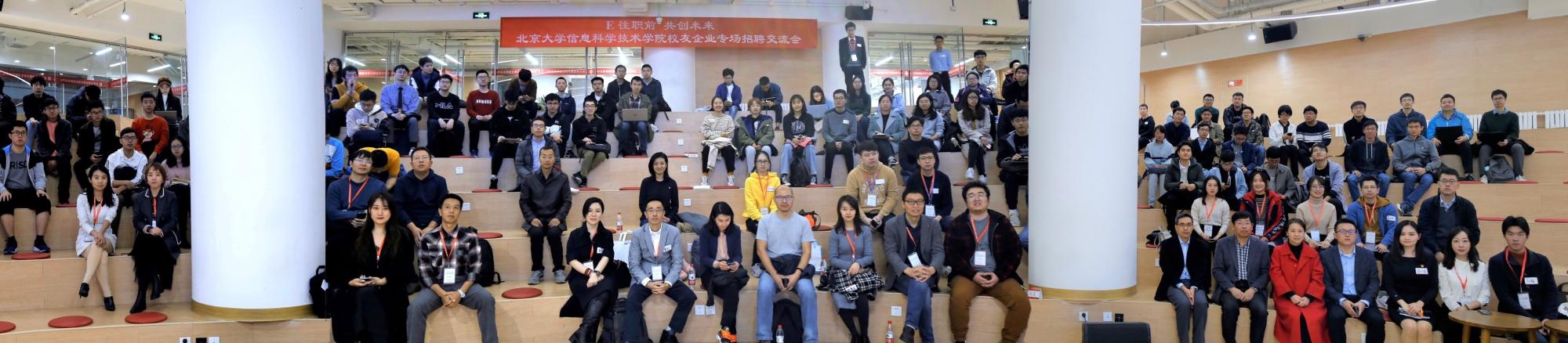 2019年11月8日下午,“E往职前,共创未来”北京大学信息科学技术学院首次校友企业专场招聘交流会于全球大学生创新创业中心成功举办。北京大学学生就业指导服务中心主任陈征微、北京大学校友工作办公室副主任李存峰到场指导,学院党委书记魏中鹏、北京大学(天津滨海)新一代信息技术研究院常务副院长马修军、计算机科学技术系网络与信息系统研究所副所长边凯归莅临现场。13家校友企业单位进行了精彩的宣讲和交流,近200位同学参加了活动。活动由学院学生工作办公室主任、院友会执行秘书长李子奇主持。
