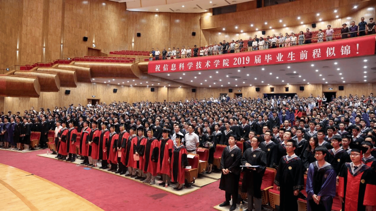 7月1日上午,信息科学技术学院2019年毕业典礼在百周年纪念讲堂观众厅隆重举行。学院党政班子成员、教师代表、家长代表及2019届毕业生等一千余人参加了典礼。典礼由学院党委副书记熊校良主持。