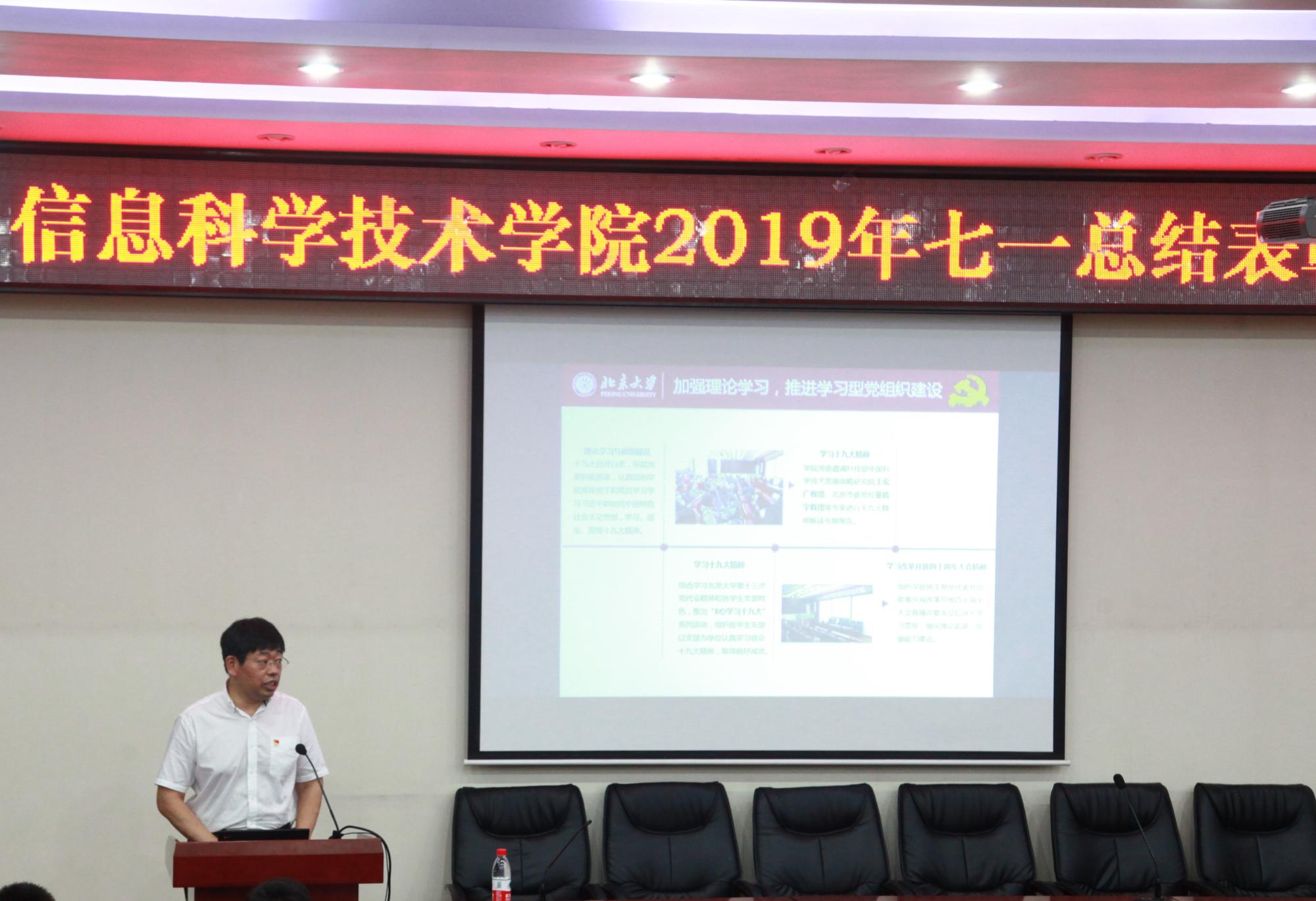 6月20日下午,信息科学技术学院七一表彰大会在理科二号楼2129会议室隆重举行。学院党政领导、各支部负责人、党员代表、发展对象参加了大会。大会由信息科学技术学院党委副书记熊校良、王源主持。