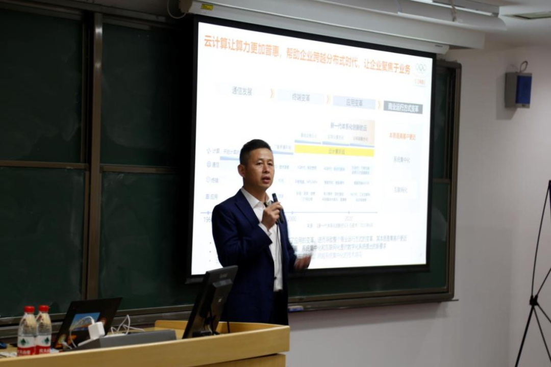 阿里云人力资源副总裁孙中元、人才发展专家高业庭、人才发展经理王露涤、高校合作总监李贝等出席活动。北大信息科学技术学院党委副书记贾方健、学工办主任李子奇、团委书记吕媛、学工办副主任崔玥等老师参加了活动。本次讲座由信息科学技术学院副院长王润声老师主持。
