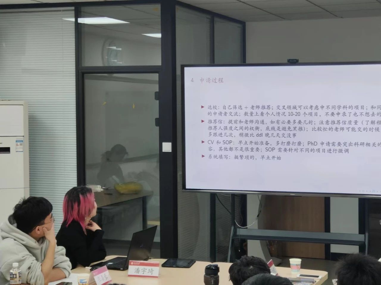 在自由讨论环节,同学们就关心的问题与二位分享同学热烈交流讨论,讨论了“留学的硬性要求”“如何了解外国高校老师的研究方向”“如何平衡课内学习与科研”等话题。学长学姐对于同学们的不同问题给出了细致而独到的见解,帮助同学们找准定位、高效学习。