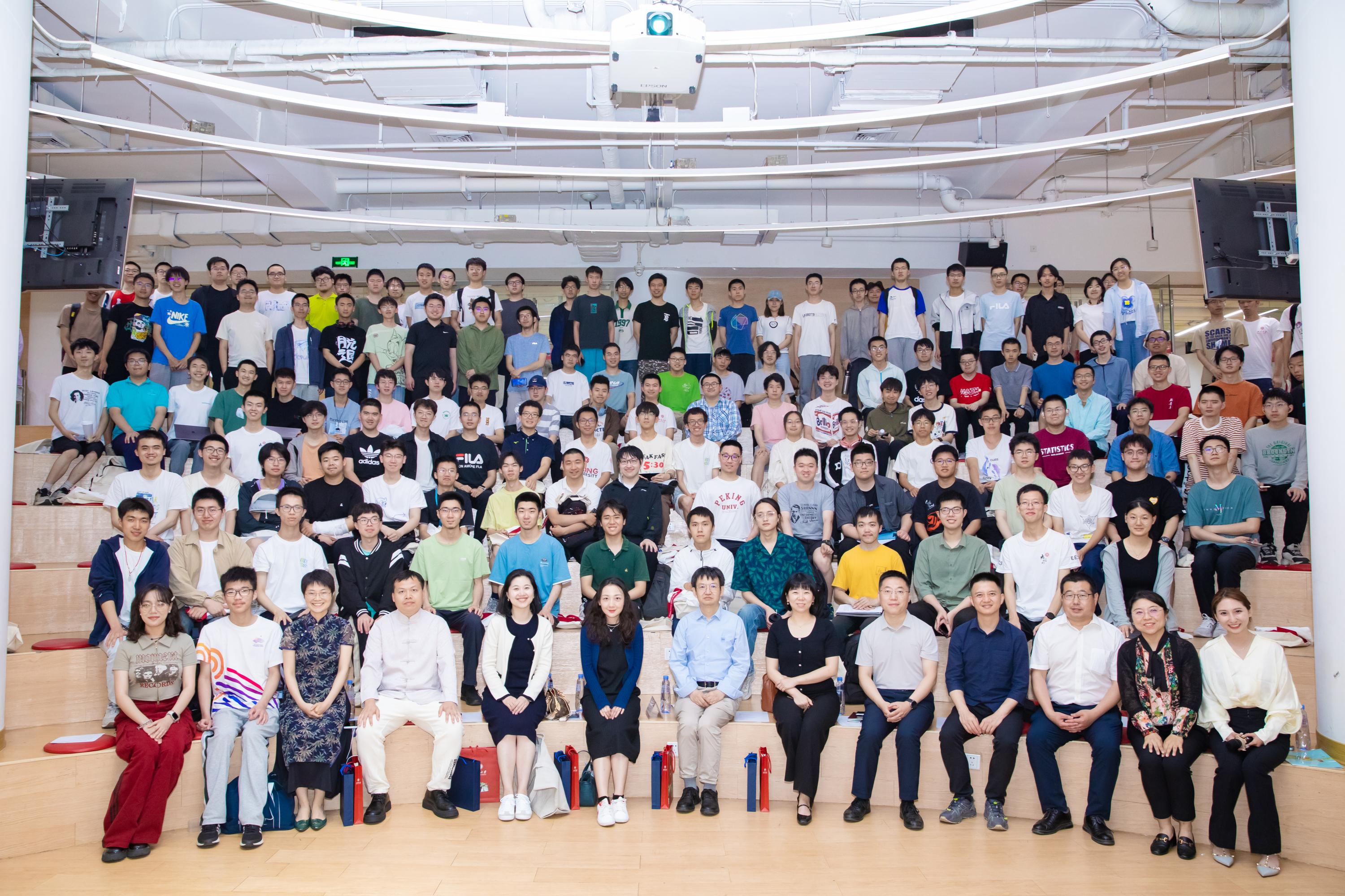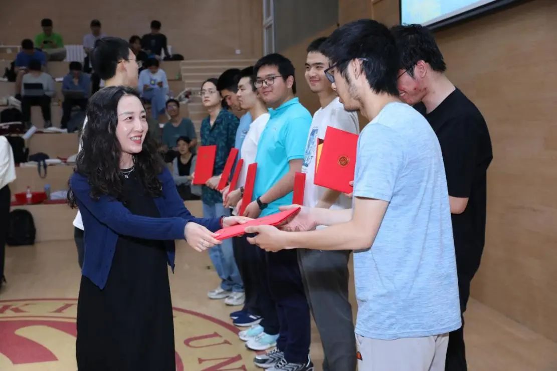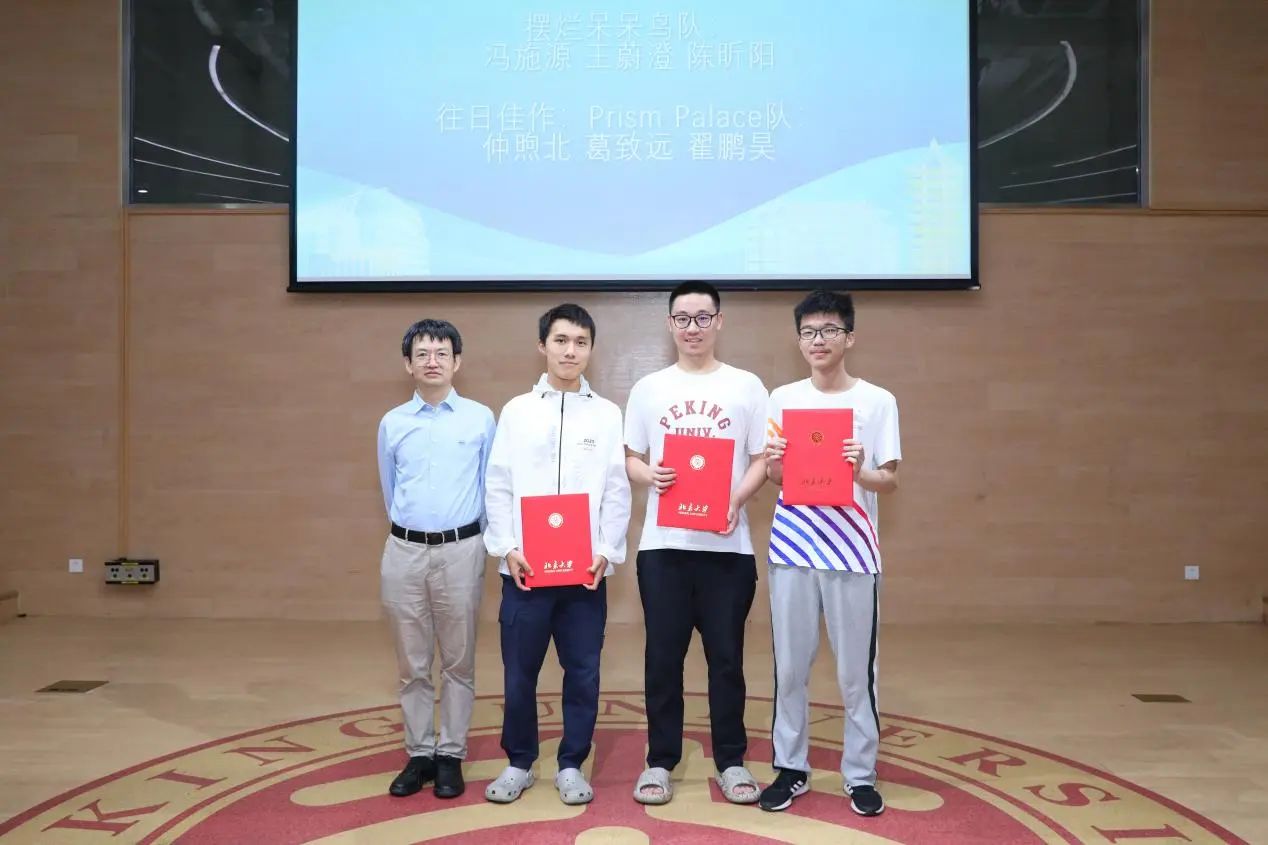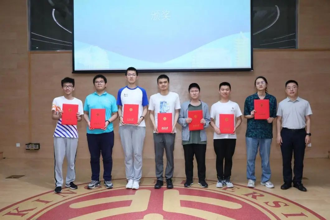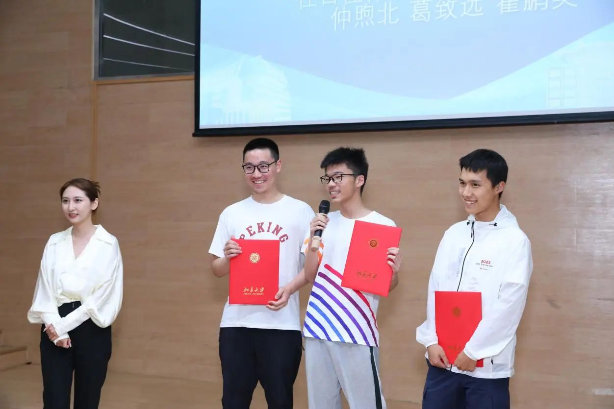 当晚19点30分,本届比赛的颁奖典礼在北京大学全球大学生创新创业中心报告厅举办。城堡证券资深人力资源业务合作伙伴薄祺雯、城堡亚太区校园招聘主管戴璟珂、华为京津东北招聘调配部部长俞婷君、华为ICT产品与解决方案竞赛经理雷俭、华为北京研究所人力资源部人力资源经理王松、明汯投资Tech Lead Kim 、明汯投资北京办公室主管郭金霞等合作企业嘉宾出席典礼。北京大学信息科学技术学院院长侯士敏、党委副书记贾方健、团委书记吕媛、团委副书记刘天怡老师也参加了活动。全体参赛队伍代表和各命题人齐聚现场。