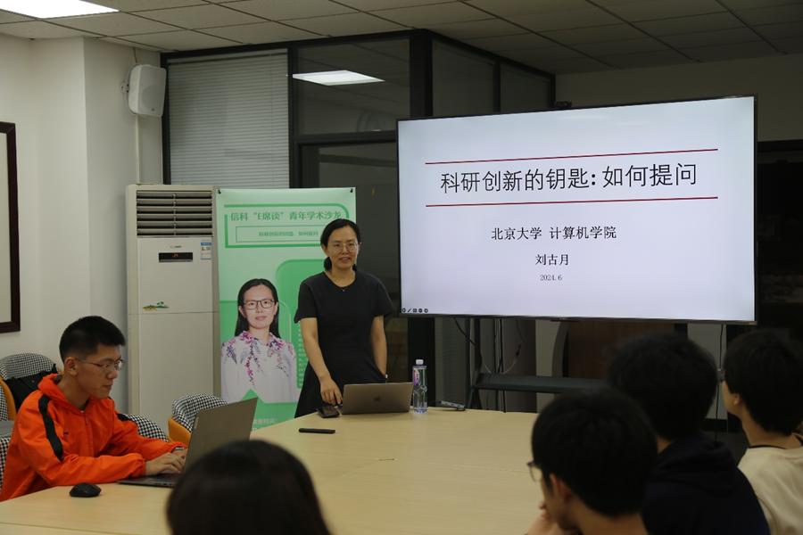 2024年6月7日晚,信科“E席谈”青年学术沙龙第二十五期活动在理科一号楼1127学生活动室顺利举办。北京大学计算机学院助理教授、博士生导师刘古月老师受邀进行了以“科研创新的钥匙:如何提问”为主题的分享。学院团委副书记刘天怡老师参加了本次活动。本次沙龙由院青年志愿者协会梅志垒同学主持。
