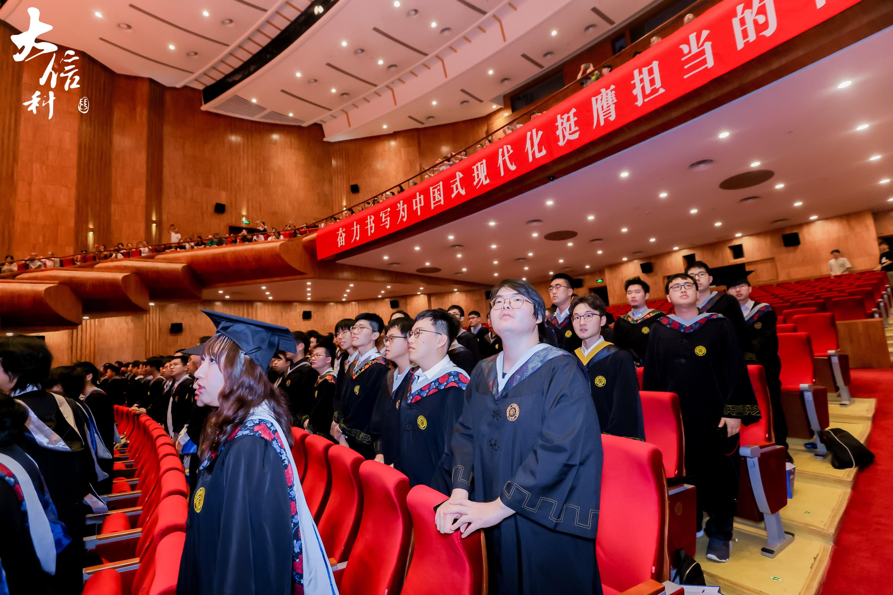 典礼最后,毕业生们一一上台,严敏杰、侯士敏、王润声三位老师为他们拨穗正冠。在老师们深情的注视下,在毕业生们坚毅的目光里,这一份祝福与期许,传递到每一个人的心中。