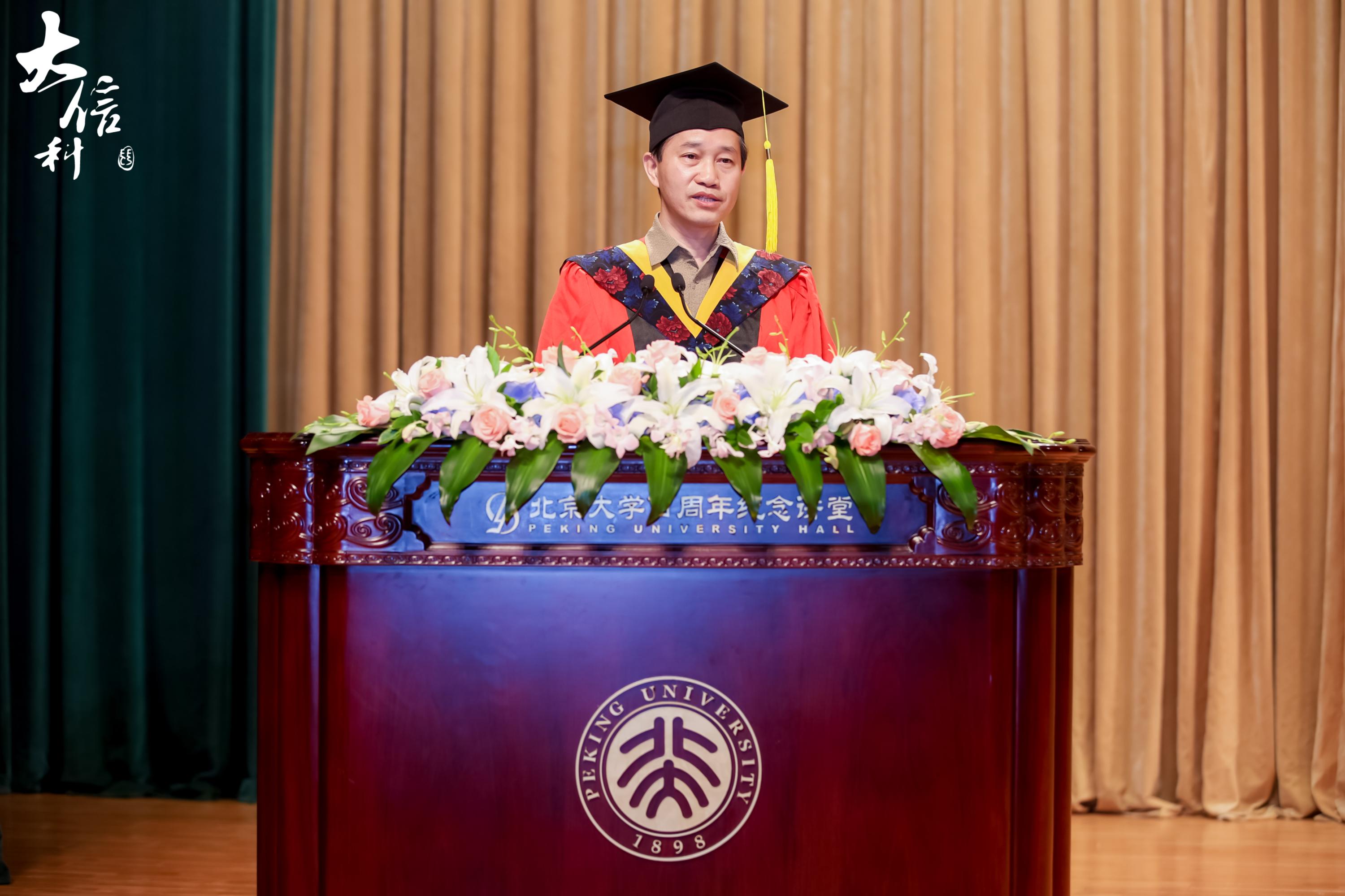 家长代表,陈天朗同学的父亲陈俊勇先生同大家分享自己对于北大信科的学习与生活的一些感触。北大的文化底蕴深厚,学术科研水平卓越,校园文化和社团活动丰富多彩,为同学们提供了广阔的发展空间。信息科学技术学院不仅为同学们提供了世界一流的师资力量,还开展了如学生学术科创季、信科“E席谈”学术沙龙、创新+工作站等富有成效的培养活动。希望同学们乘着时代的东风,续写北大信科人的辉煌。谱写民族复兴的新乐章。