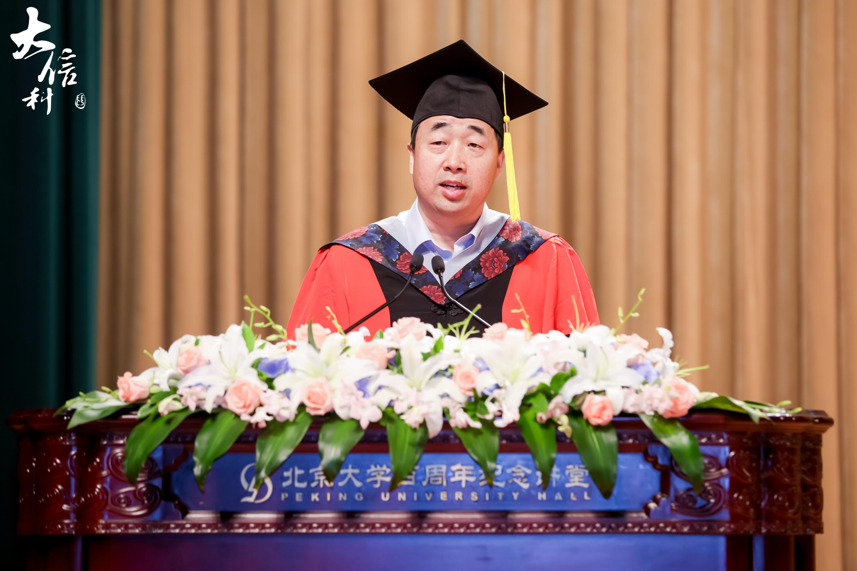 侯士敏院长首先向2024届毕业生致以衷心的祝贺。他引领大家回顾了燕园四年中重要而难忘的青春回忆,称赞大家的专业、热情和奋勇担当。他讲到,国家的建设与发展需要青年的努力与奋斗,建设科技强国、实现高水平科技自立自强更是“大信科”青年人的使命担当。对于即将面对的未来新挑战,侯士敏院长提出三点期望:一是希望大家大道如砥、初心不怠;二是希望大家迎难而上、开拓进取;三是希望大家关注内心、幸福充实。最后,他祝愿同学们一帆风顺、前程似锦,开启新的人生篇章。