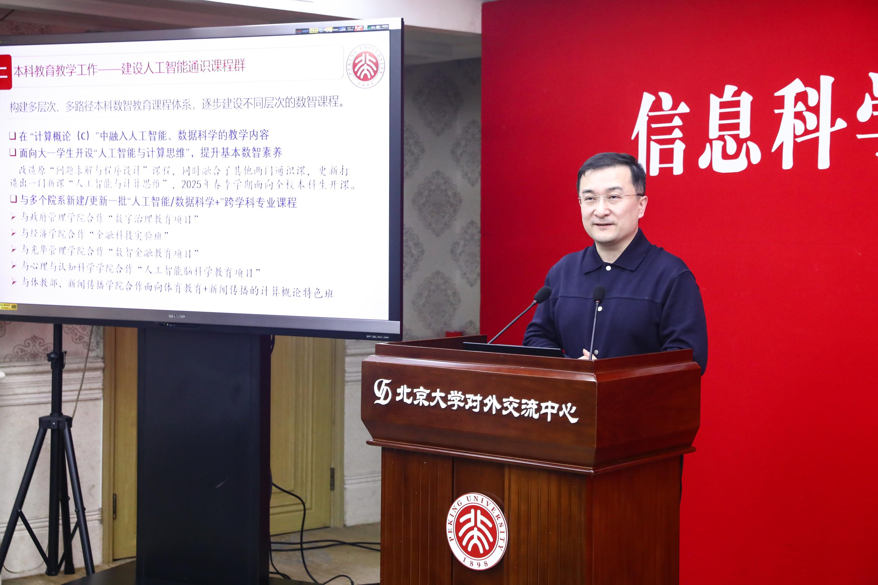 会议伊始,学院院长侯士敏作学院2024年度工作总结报告。侯士敏从学院概况、工作成效、举措成绩、发展探索等多个方面,全面而深入地阐述了学院在过去一年中取得的显著成绩与突破。这一年,学院修订了2024级本科生培养方案;实验班育人成果丰硕,发表学生论文数十篇;学院获得北京大学“班级五·四奖杯”、“北京大学示范班集体”、“学生资助工作先进单位”等多项学生集体荣誉;涌现北京大学“学生五·四奖章”获得者、优秀党支部书记等优秀个人;学院创设“创新+”工作站,探索产学融合人才培养新模式;2名本科生入选2024年度国家自然基金委青年学生基础项目,11名学生入选2024年度北京市自然科学基金本科生启研计划拟资助项目,2024年校级长期项目立项88项,短期项目立项14项;在赛事活动中,荣获第48届ICPC全球总决赛金牌、冠军;ASC24世界大学生超级计算机竞赛总决赛蝉联大赛总冠军等。以学校“2024学科质量年”为契机,学院进行了书院制探索。现已完成了大量的前期调研工作,包括清华、人大、浙大、上交等国内高校,港大、中文、岭南等香港地区高校,以及剑桥、帝国理工、杜伦大学、国王学院等英国高校。拟通过书院制建设,落实学院教育理念,提升人才自主培养能力。同时也客观分析了当前面临的挑战,并提出了相应的应对策略和未来的发展规划,为学院新一年的工作指明了方向。