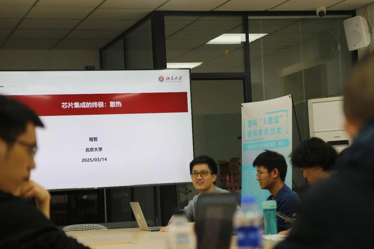 2025年3月14日晚,信科“E席谈”青年学术沙龙第二十八期活动在理科一号楼1127学生活动室顺利举办。北京大学集成电路学院研究员、助理教授、博士生导师程哲老师受邀进行了以“芯片集成的终极:散热”为主题的分享。活动由信科青协蒋康悦同学主持。学院团委副书记刘天怡老师参加了本次活动。