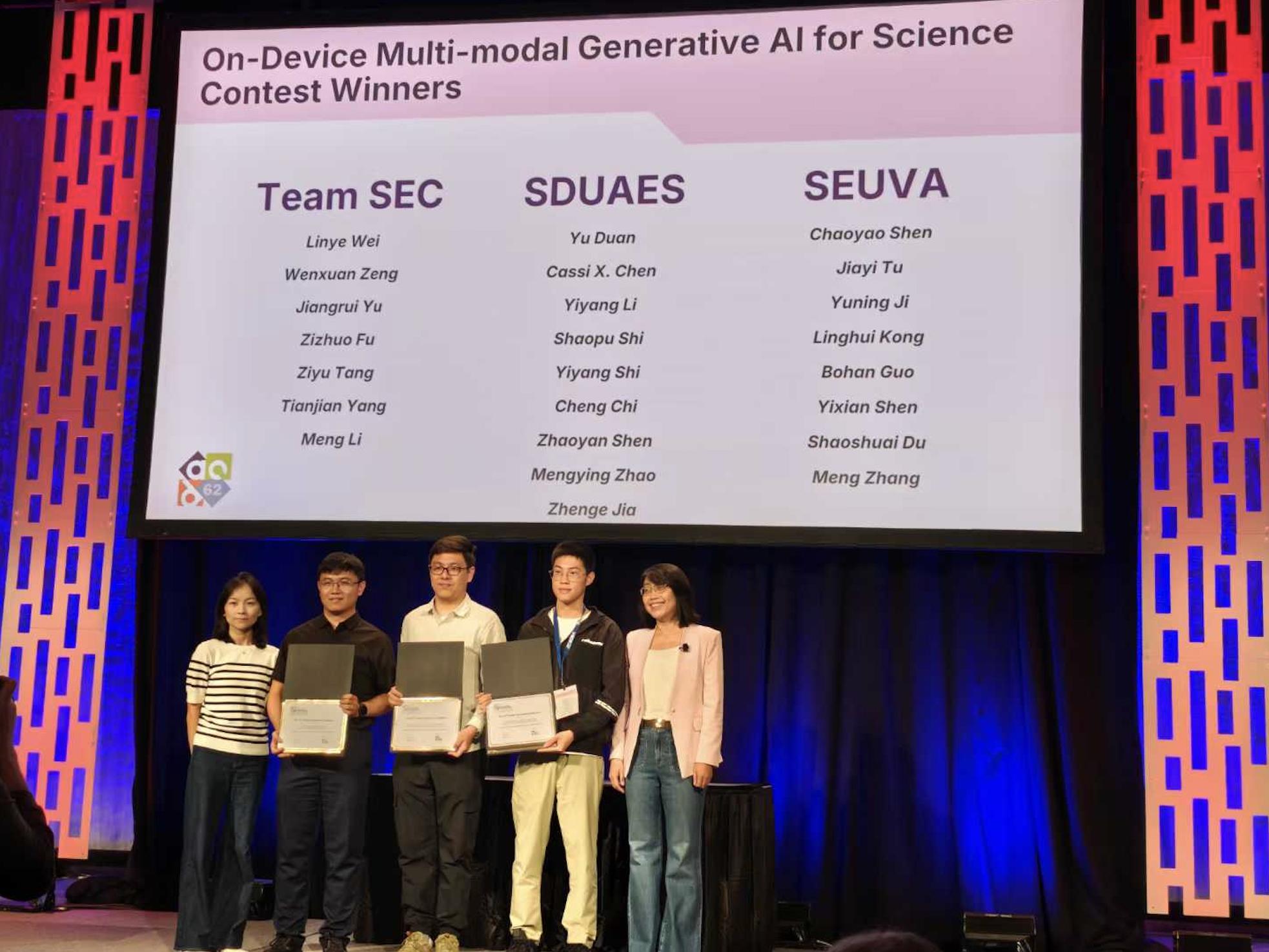 在2025年第62届ACM/IEEE设计自动化大会(DAC)系统设计竞赛中,北京大学人工智能研究院和集成电路学院双聘助理教授李萌老师指导的学生队伍获得冠军。参赛学生包括来自集成电路学院设计自动化与计算系统系的三位博士生韦临烨、曾文轩、俞江瑞和来自信息科学技术学院电子信息科学类实验班(信班)的三位本科生傅子酌、汤子瑜、杨天健。DAC系统设计竞赛由美国计算机学会(ACM)设计自动化专业委员会(SIGDA)赞助,竞赛组织者来自美国乔治梅森大学、北卡罗来纳大学教堂山分校和电子科技大学。本次比赛针对如何在低功耗边缘设备上部署多模态生成式人工智能算法的科学问题,吸引到了来自世界各地的参赛队伍,包括美国、中国、德国、荷兰等。