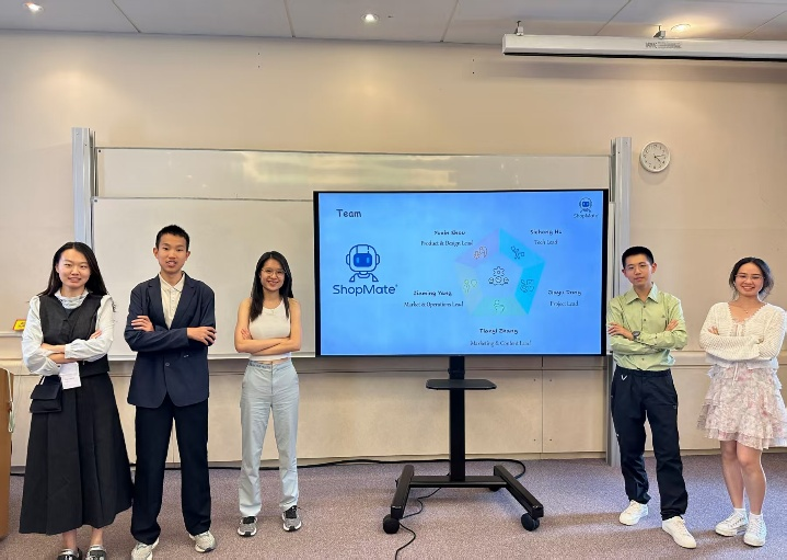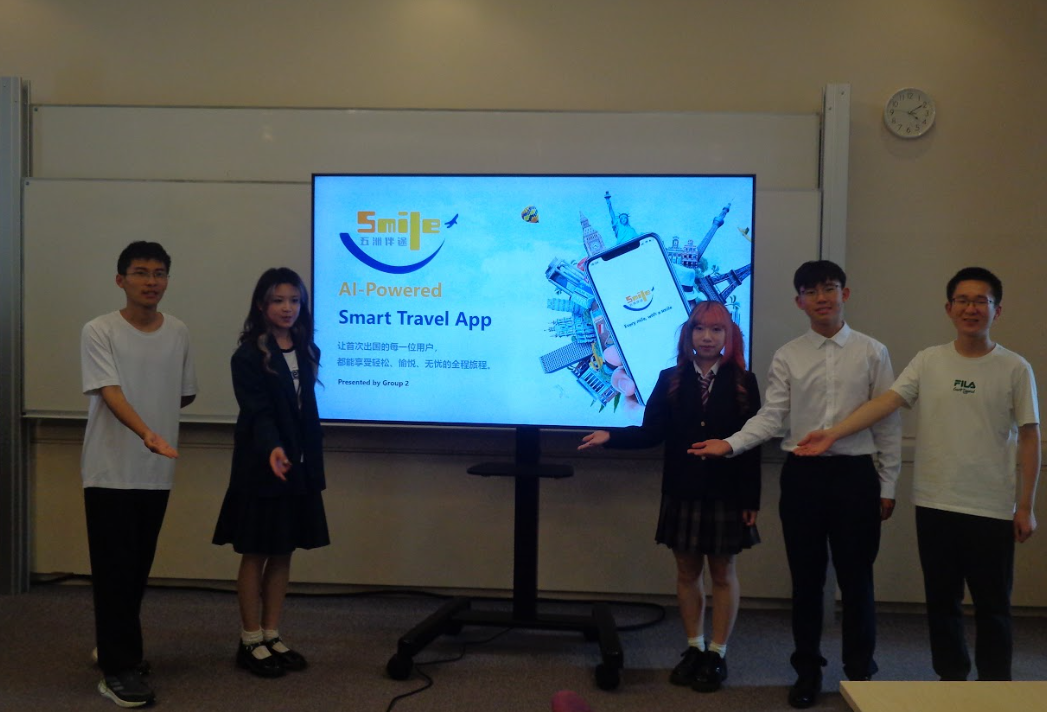 项目期间,恰逢由中国国际大学生创新大赛组委会主办,北京大学创新创业学院、北京大学汇丰商学院承办的2025中英青年创新大赛暨中国国际大学生创新大赛(2025)英国区域赛决赛举行。本次项目终期考核与创赛有机结合在一起,同学们分成5个小组,围绕“AI+”,构想出创业想法,并在终期汇报中进行路演。