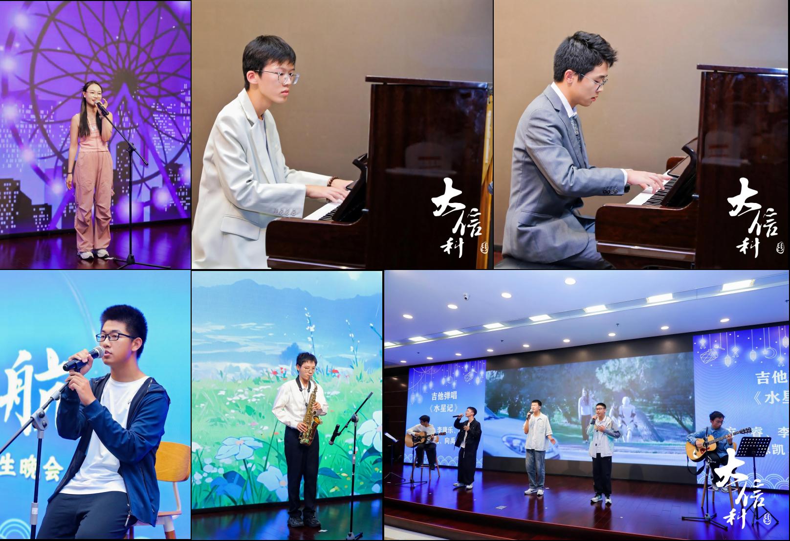 第三篇章“心随声动,梦启华章”进一步提升了晚会的艺术层次与情感深度:十佳歌手冠军李昕璇同学演唱的《夜来香·流花》婉转动人;方一睿、李康乐、林植、王思凯、向禹铭五位同学的吉他弹唱《水星记》温柔静谧;丁培鑫同学歌唱的《无名的人》情感真挚,引发共鸣;陈主寰、弥梓睿同学的钢琴联奏《彩云追月》《悼念公主的帕凡舞曲》融合古典与现代,展现了高超的演奏技艺与艺术表现力。倪睿同学的萨克斯独奏《青春大概》旋律悠扬,引人回味。