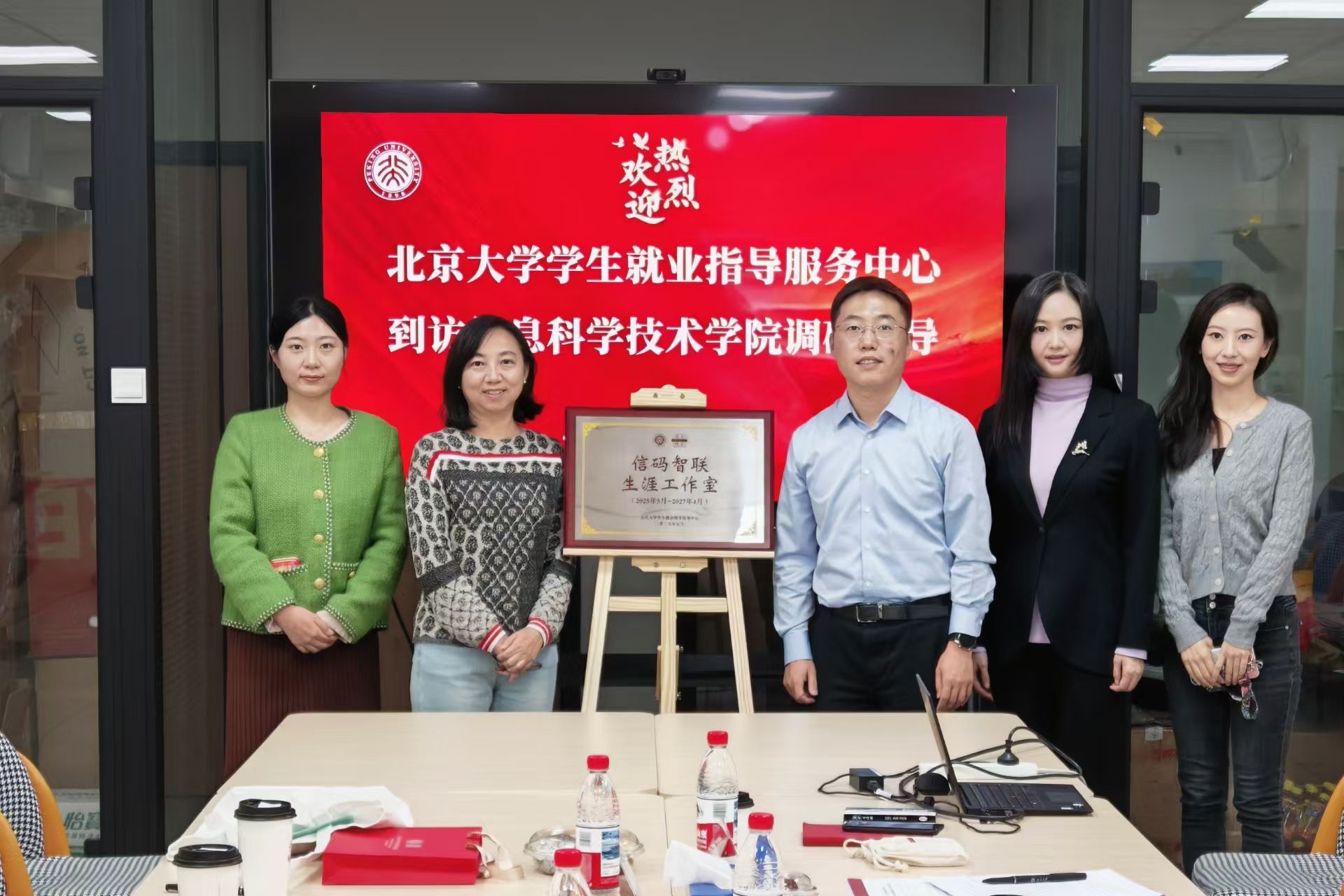 2025年10月16日,北京大学学生就业指导服务中心副主任李妍、职业发展教研室主管邹霞一行到访信息科学技术学院开展专题调研,双方在理科一号楼1127学生创新活动空间,围绕“信码智联生涯工作室”运行情况开展座谈。信息科学技术学院党委副书记贾方健、学工办主任李子奇及学工干部付晓倩参加活动。