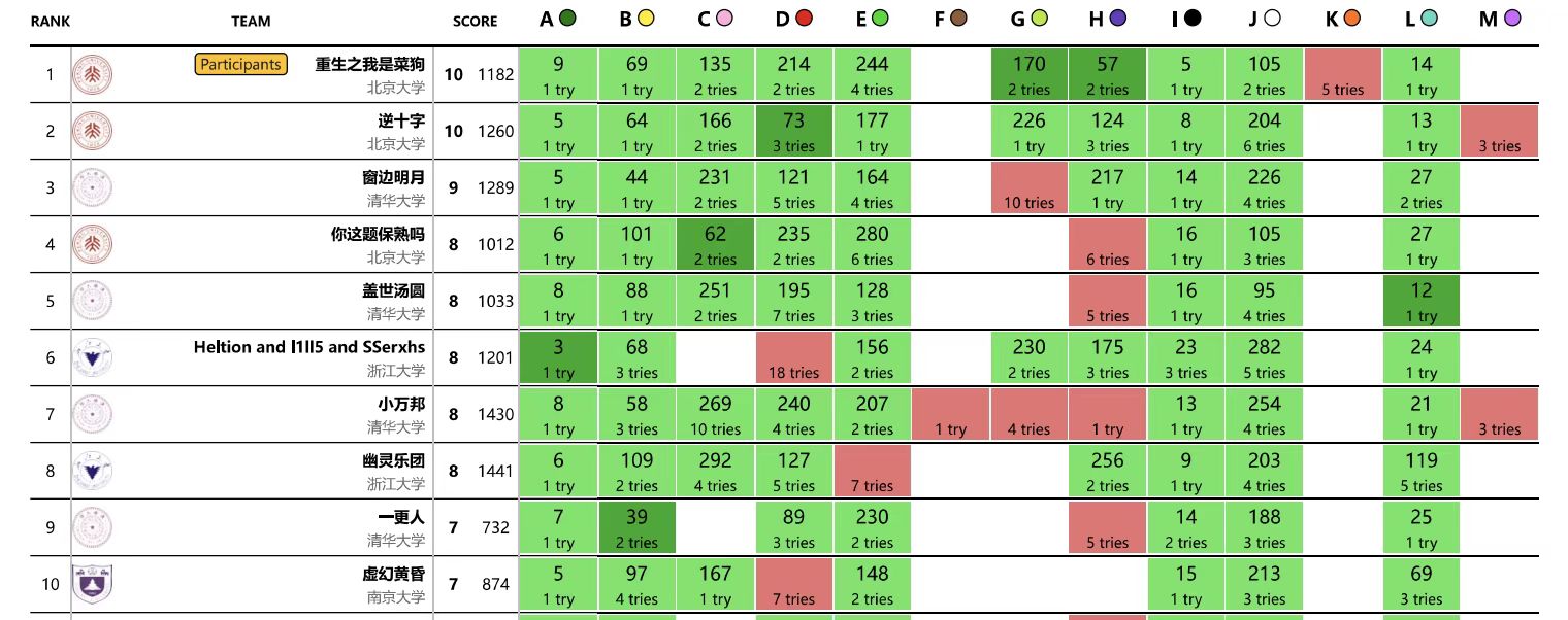 北大队伍成绩