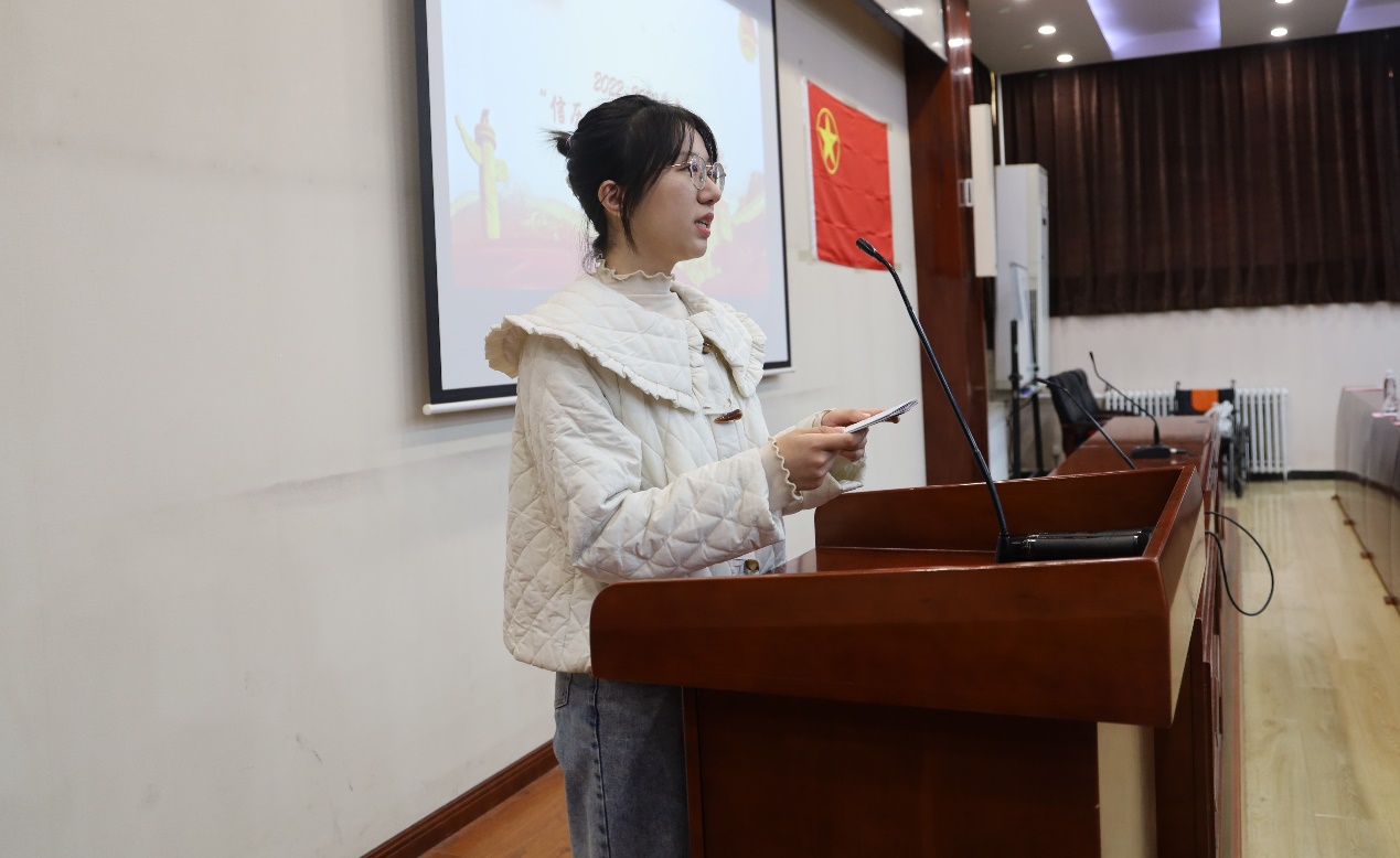 本届团校新生学员代表、艺术学院2021级本科生李宣宣发言