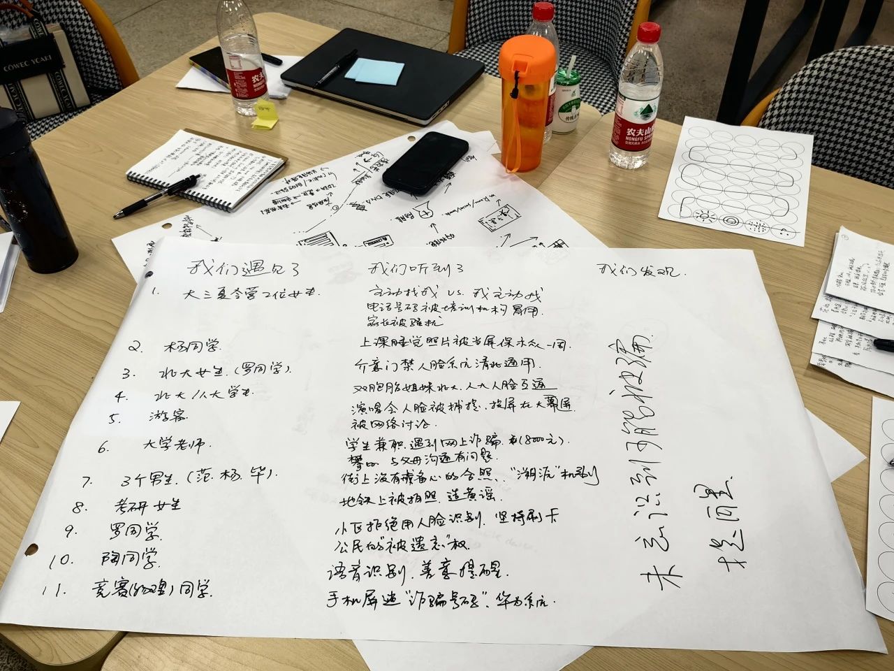 访谈结束后,成员们结合收集到的信息,进行了一场又一场头脑风暴,用便利贴搭建起一个点子王国,不断拓宽着思维的边界。