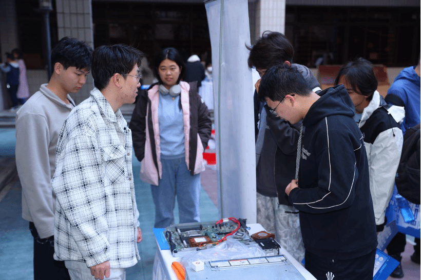 除此之外,此次活动还有着许多社团组织的支持。Linux社团进行的线上微测试考察同学们对网络知识的了解,极客实验室搭建的四驱车竞速赛则对动手实践能力有更高的要求,信科电脑小队让大家了解计算机的基本架构......在一个个展位上,同学们收获的不仅是快乐,更有知识以及对未来学习的憧憬与兴趣。