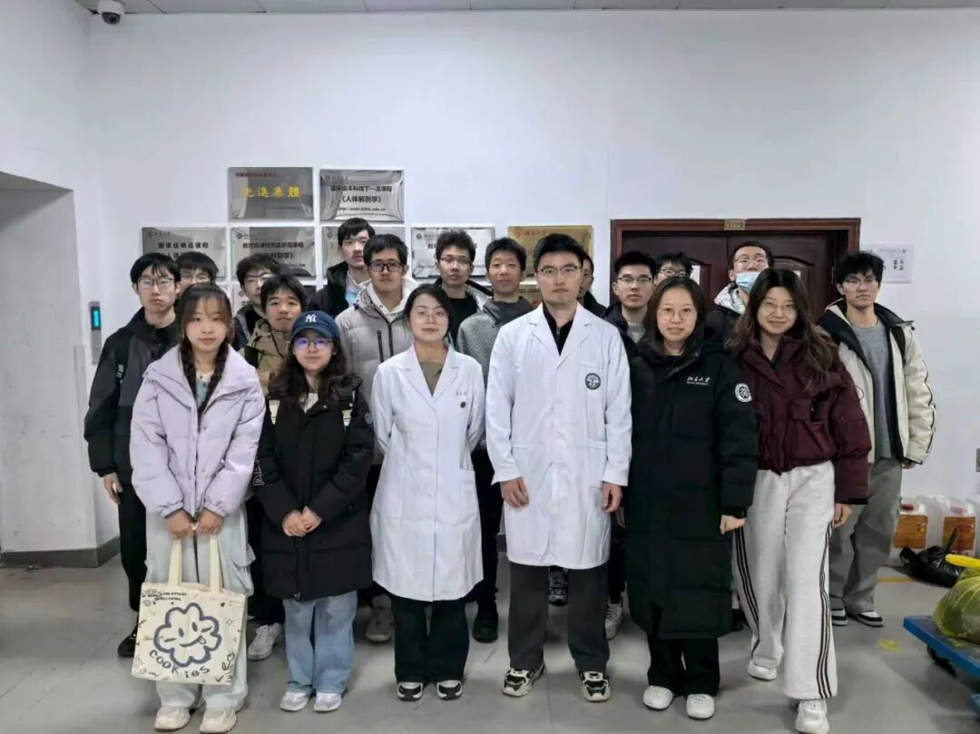 与此同时,以北医三院研究生第十党支部周恩达同学为向导,信息科学技术学院的同学们参观了医学部解剖博物馆和校园。李瑞老师和王超老师以专业而生动的讲解,带领大家深入了解人体生理结构与解剖学知识,并分享了医学部的学科发展历程。活动最后,全体同学合影留念,记录下这场跨学科的交流与收获。