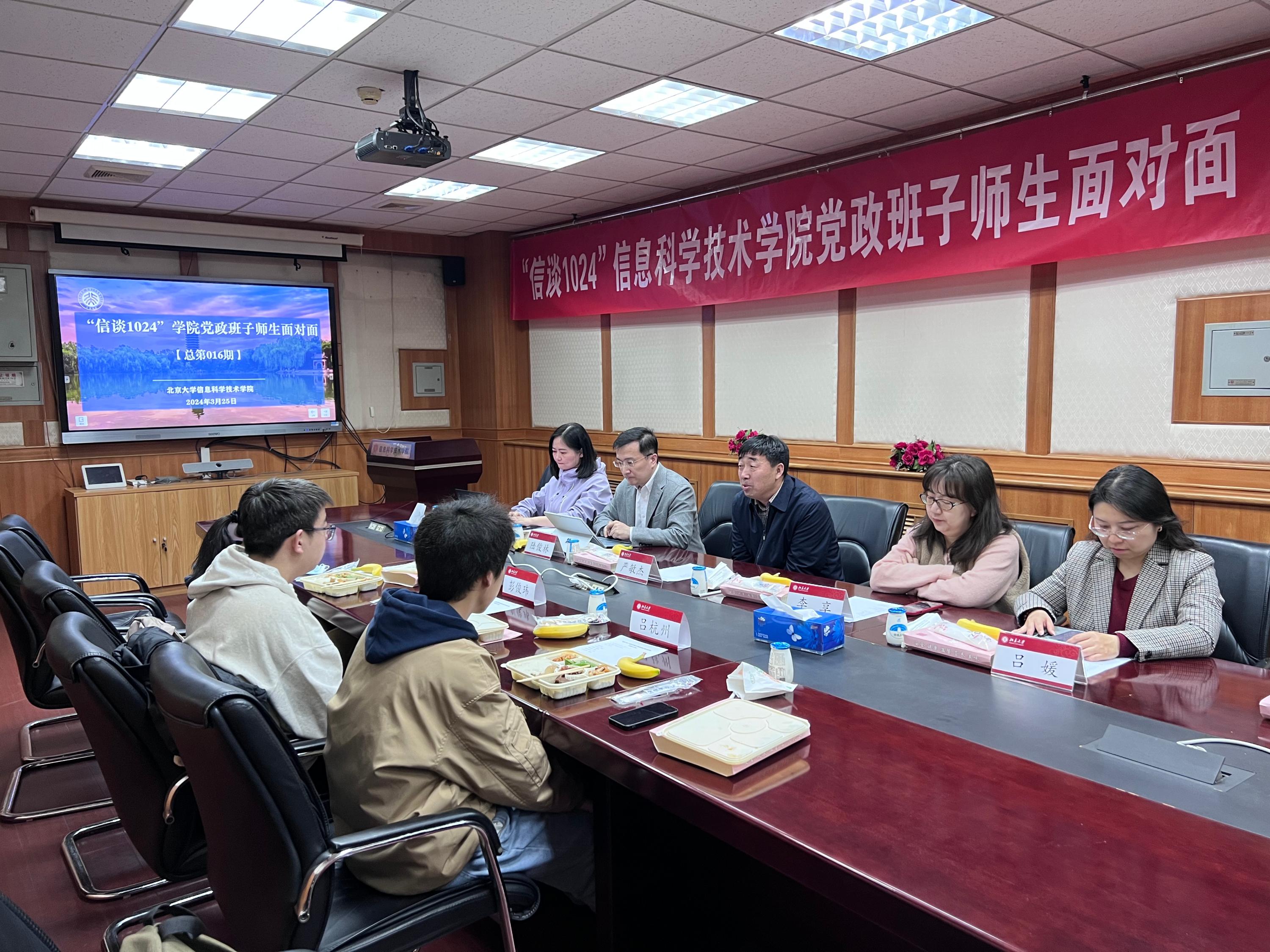 “信谈1024”信科党政班子师生面对面是信息科学技术学院师生交流品牌活动,首期活动于2023年3月10日举办,并固定在每月10日及24日开展。通常每月10日为个人单独面谈,每月24日为多人群体座谈。“1024”是2的10次方,这个和二进制相关的数字为信息学科师生所熟悉。活动旨在围绕学院人才培养这一中心工作,通过搭建学院党政班子和全院师生的日常面对面交流平台,大兴调查研究之风,广泛听取意见建议,破解学院发展难题,力求解决师生中长期存在的困惑或问题,凝聚共识,勠力同心,推进学院更好更快发展。