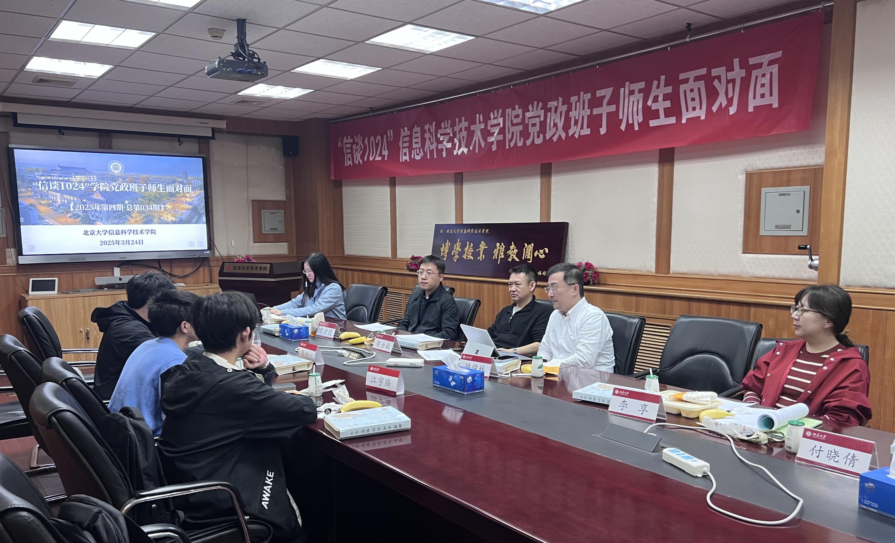 2025年3月24日中午,信息科学技术学院在理科二号楼2111会议室成功举办2025年第四期(总第34期)“信谈1024”学院党政班子师生面对面活动,本次座谈会采取多人座谈的形式,对报名同学们的问题进行全面交流答疑解惑。院长侯士敏、副院长陆俊林、党委副书记贾方健,学院教学办副主任李享、学工办干部付晓倩,和成功报名的学生代表们参加了本次座谈。活动由学院学工办主任李子奇主持。