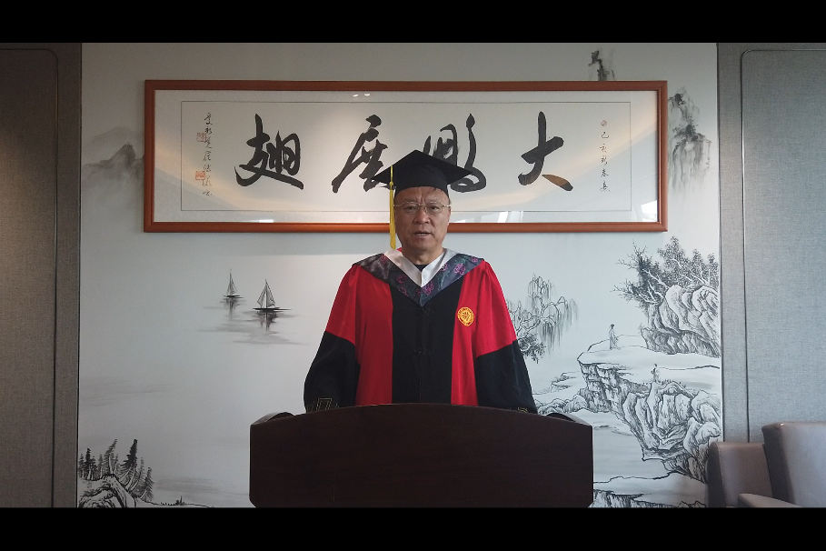 在现场热烈的掌声和同学们的期待中,中国工程院院士、信息科学技术学院院长高文教授发表讲话。他首先对毕业生圆满完成学业、顺利毕业表示祝贺,对家长及社会各界友人配合学院育人工作表示感谢,也对信科老师为本届毕业生成长进步付出的努力表达敬意。他将这个特殊的毕业典礼和毕业季看作是本届毕业生们在特殊历史时期的一门实践课,称赞同学们是美好家园的守护者、探索路上的攻坚者、课题研究的先行者,为防疫抗疫贡献了信科智慧、信科力量。在送别的时刻,高文院长对毕业生提出了三点寄语:一是希望同学们坚持终身学习,保持好奇心,与时代同步前进;二是要勇于担当,荣辱不惊,一步一个脚印踏踏实实做事;三是要目标远大,砥砺奋进,永远拥有积极励志的初心,拥有乐观向上的人生姿态。最后,高文院长指出:理想决定成就的高度,胸怀决定成就的广度,人格决定成就的深度。他勉励毕业生们带着北大赋予的精神和品格,带着信科教给的智慧和能力,在更高的层面、更宽广的天地取得更大的进步。