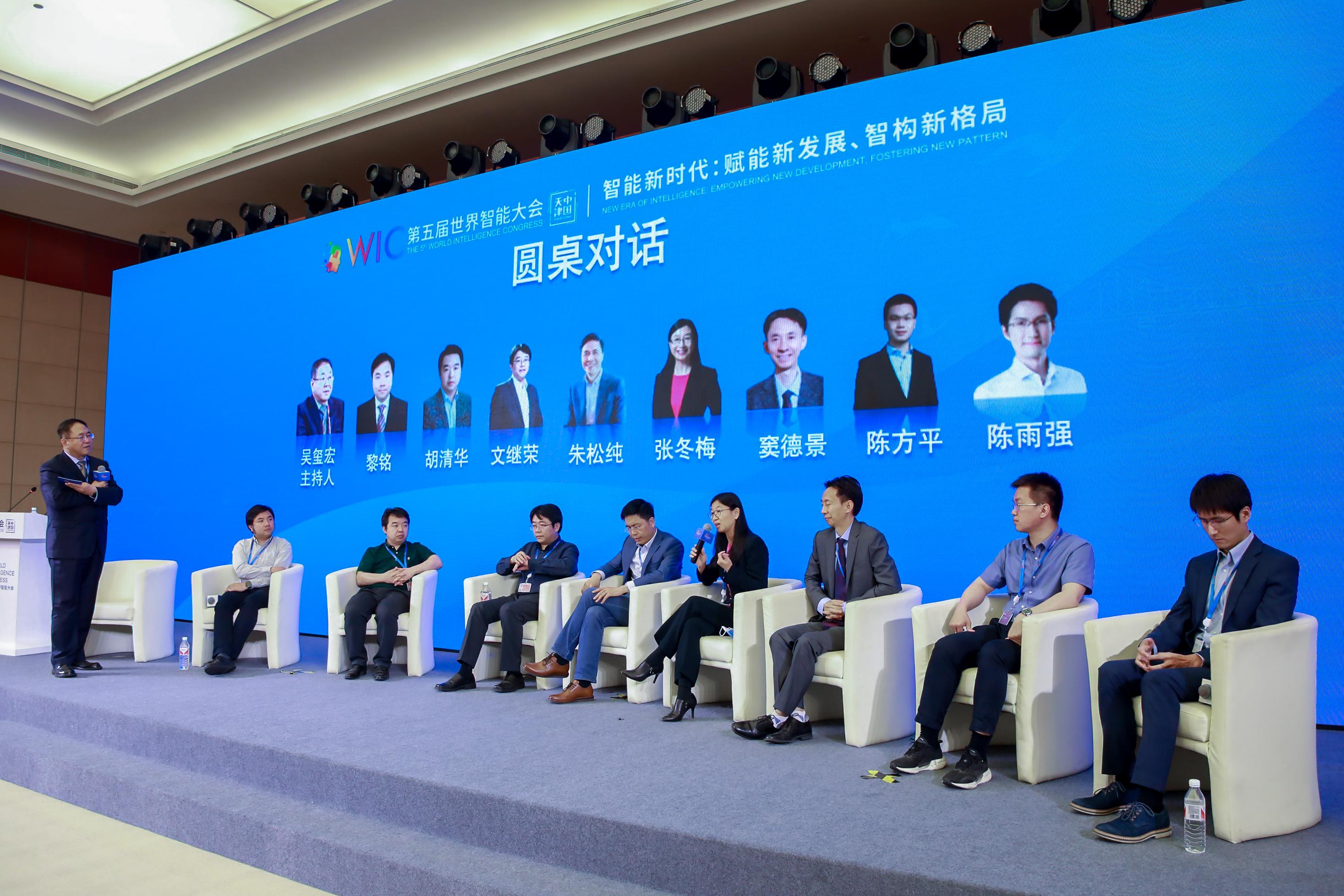 “大学AI学院与产业研究院院长对话”圆桌讨论环节,北京大学信息科学技术学院副院长吴玺宏教授主持,邀请到高校人工智能学院代表:北京大学人工智能研究院院长朱松纯教授、中国人民大学高瓴人工智能学院执行院长文继荣教授,天津大学人工智能学院院长胡清华教授,南京大学人工智能学院副院长黎铭教授;产业研究院院长代表:微软亚洲研究院副院长、杰出首席科学家张冬梅女士,百度研究院大数据实验室和商业智能实验室主任、美国俄勒冈大学终身教授窦德景先生;产业界代表:云圣智能科技有限责任公司创始人兼CEO陈方平博士,第四范式联合创始人陈雨强先生。就现阶段人工智能技术演进过程中的关键点、突破口以及发展瓶颈展开交流。