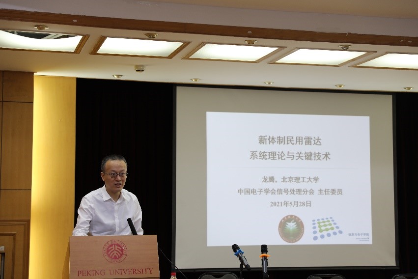 2021年5月28日上午,电子学系前沿学术论坛第八期在北京大学理科二号楼2736报告厅成功举行。本期论坛邀请到北京理工大学常务副校长龙腾教授作主题为“新体制民用雷达系统理论与关键技术”的学术报告。讲座由电子学系应用电子所李廉林老师主持,上百名师生到场聆听了报告。