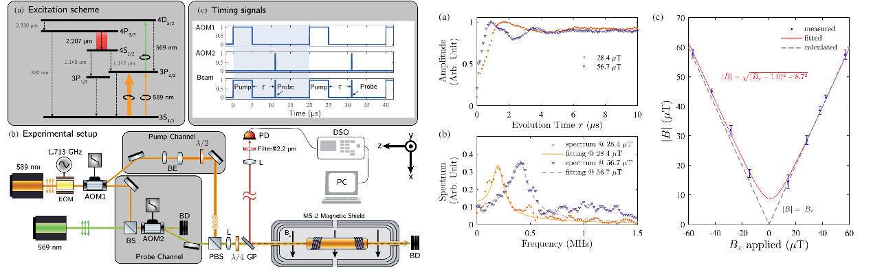 北京大学电子学系量子信息技术团队与德国亥姆霍兹研究所等科研机构合作提出了基于钠原子无反射镜激光进行远程磁场测量的新方法,并在地磁场范围中实现了基于钠原子定向光辐射的远程标量磁测量,这是国际上该类型原子光散射远程磁探测的首次实验实现。